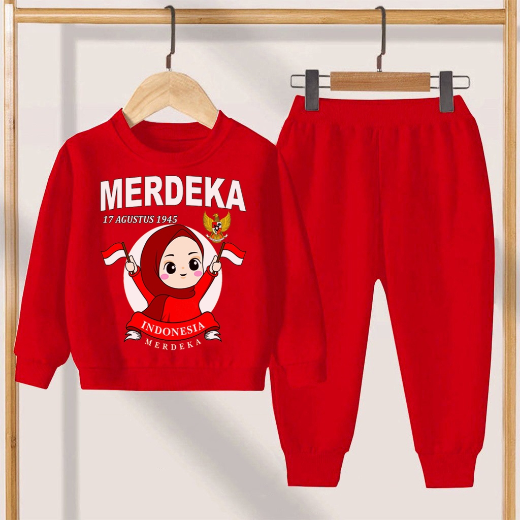 Ymf - Setelan Baju Anak 17 Agustus 1945 Merdeka / Kemerdekaan Hut Ri / Merah Putih / Usia 3-12 Tahun / Unisex