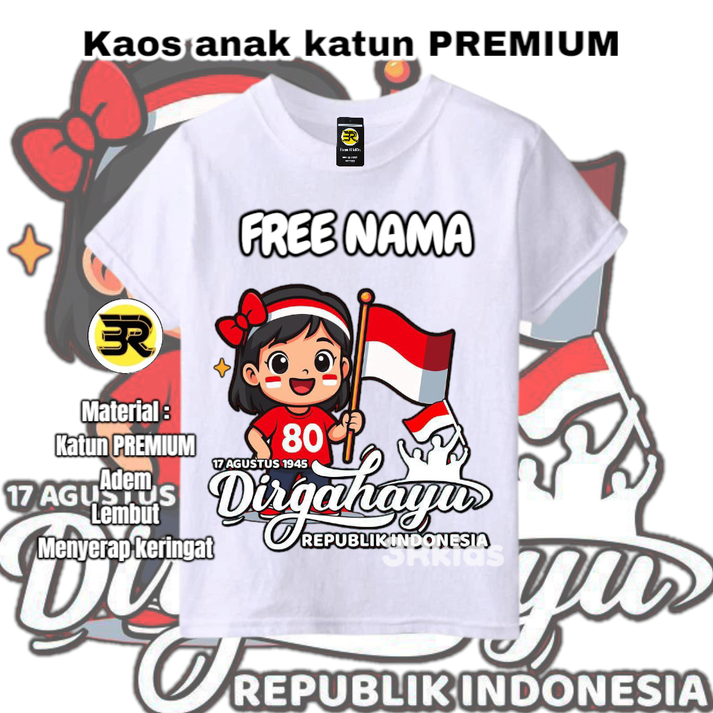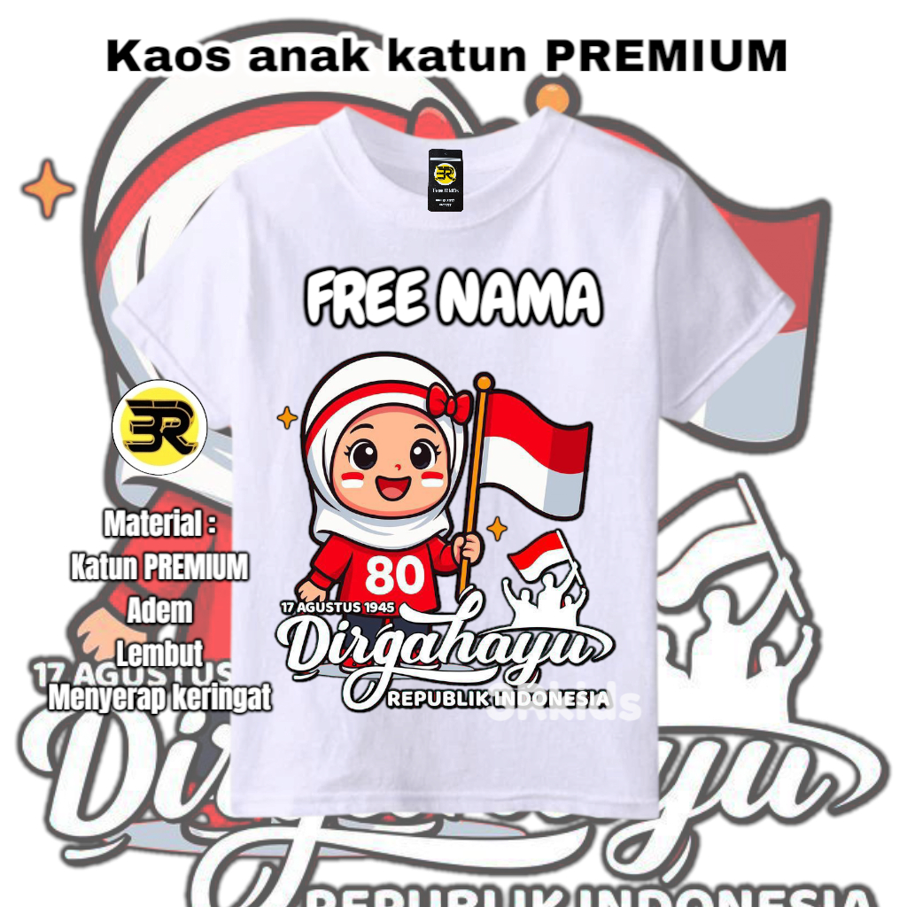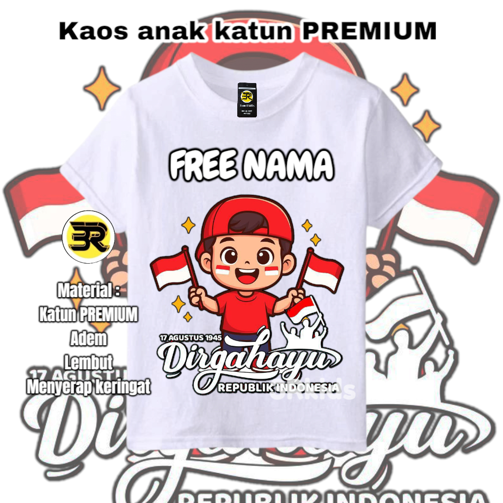 Kaos Anak Motif Kemerdekaan Indonesia Usia 1-10 Tahun Laki-Laki Dan Perempuan [Free Nama]