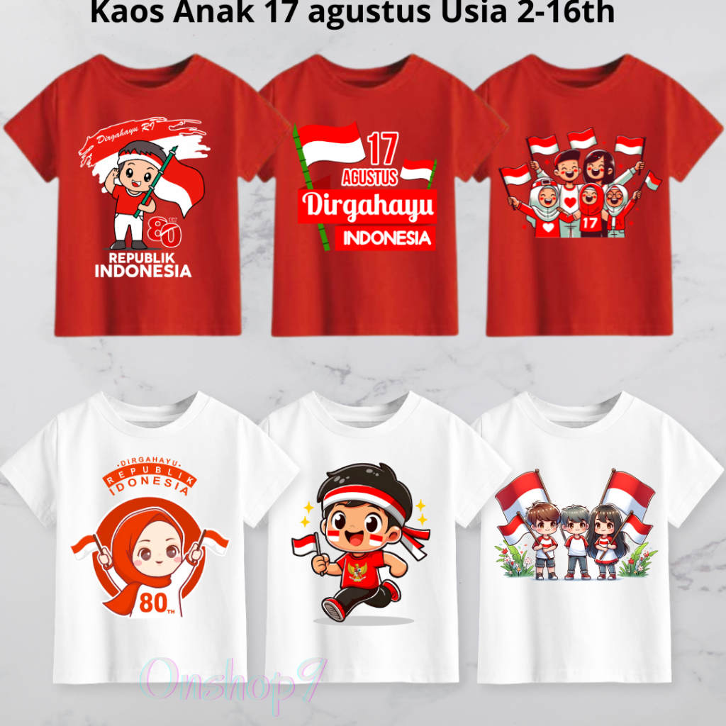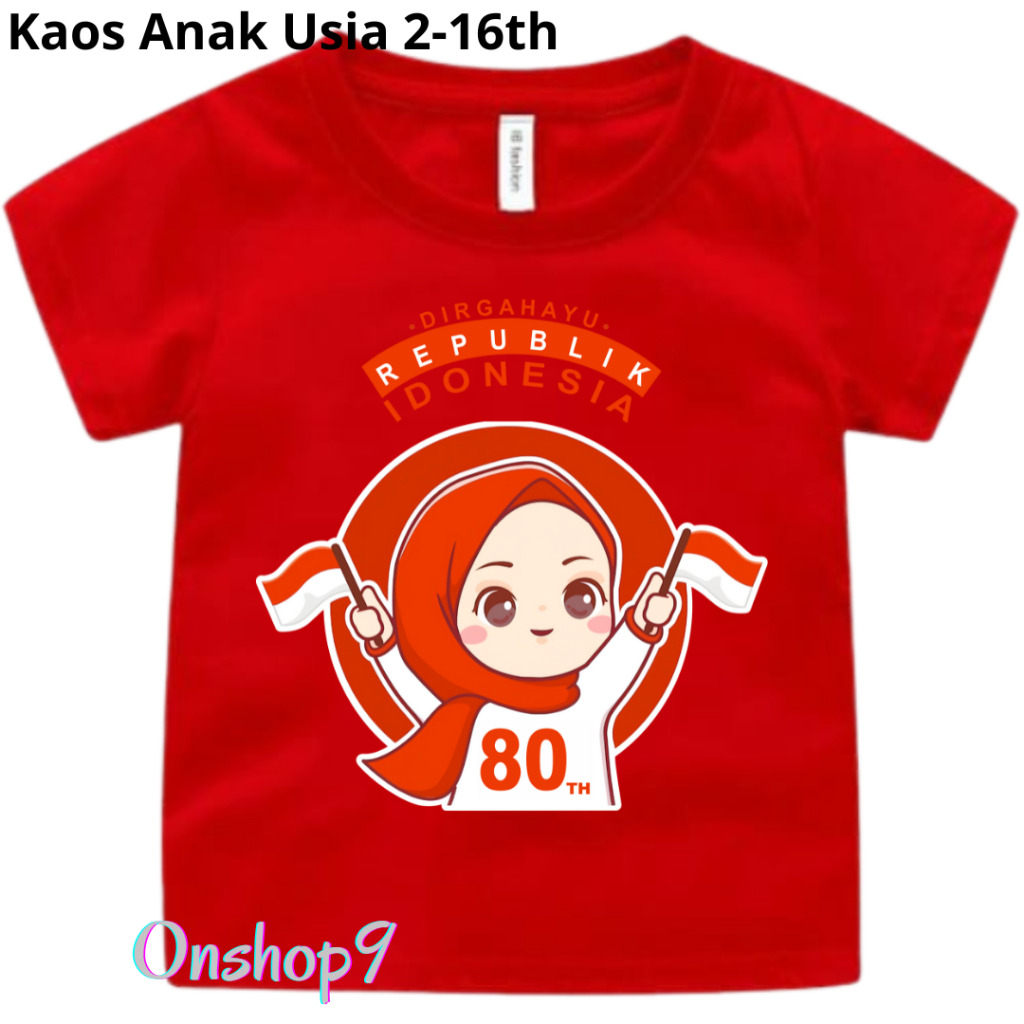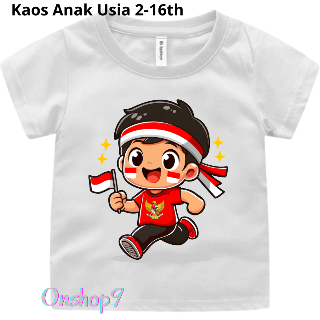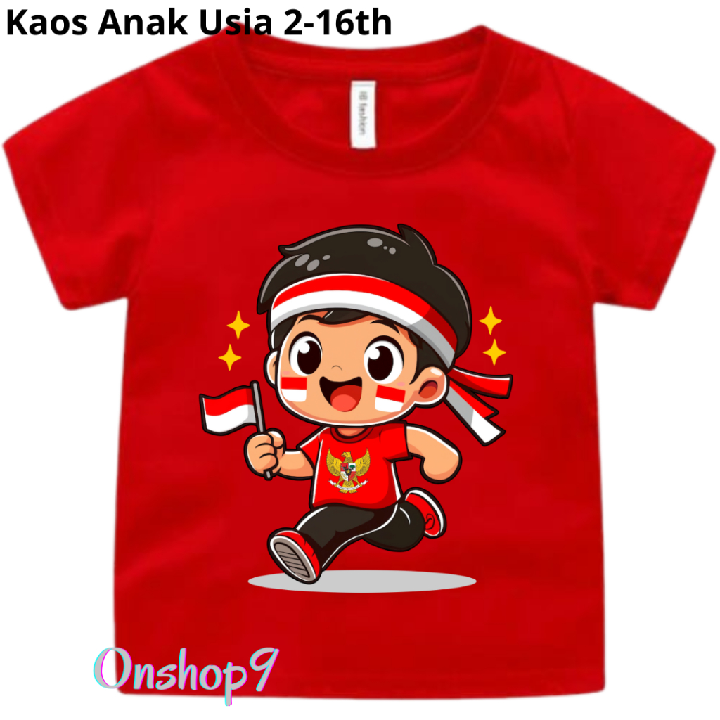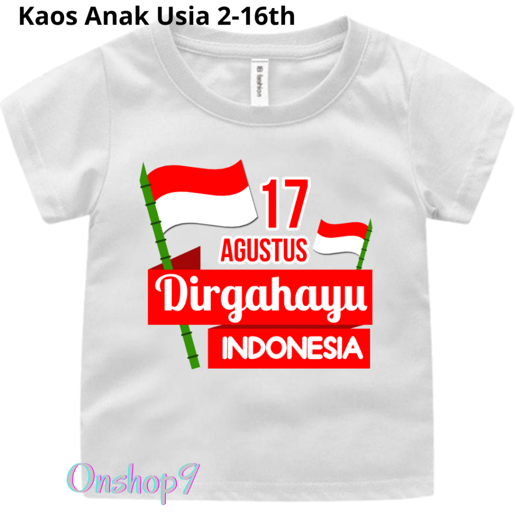 Kaos Anak Laki Laki Perempuan 17 Agustusan Kemerdekaan Anak Lengan Pendek Usia 2-16 Th Bahan Premium