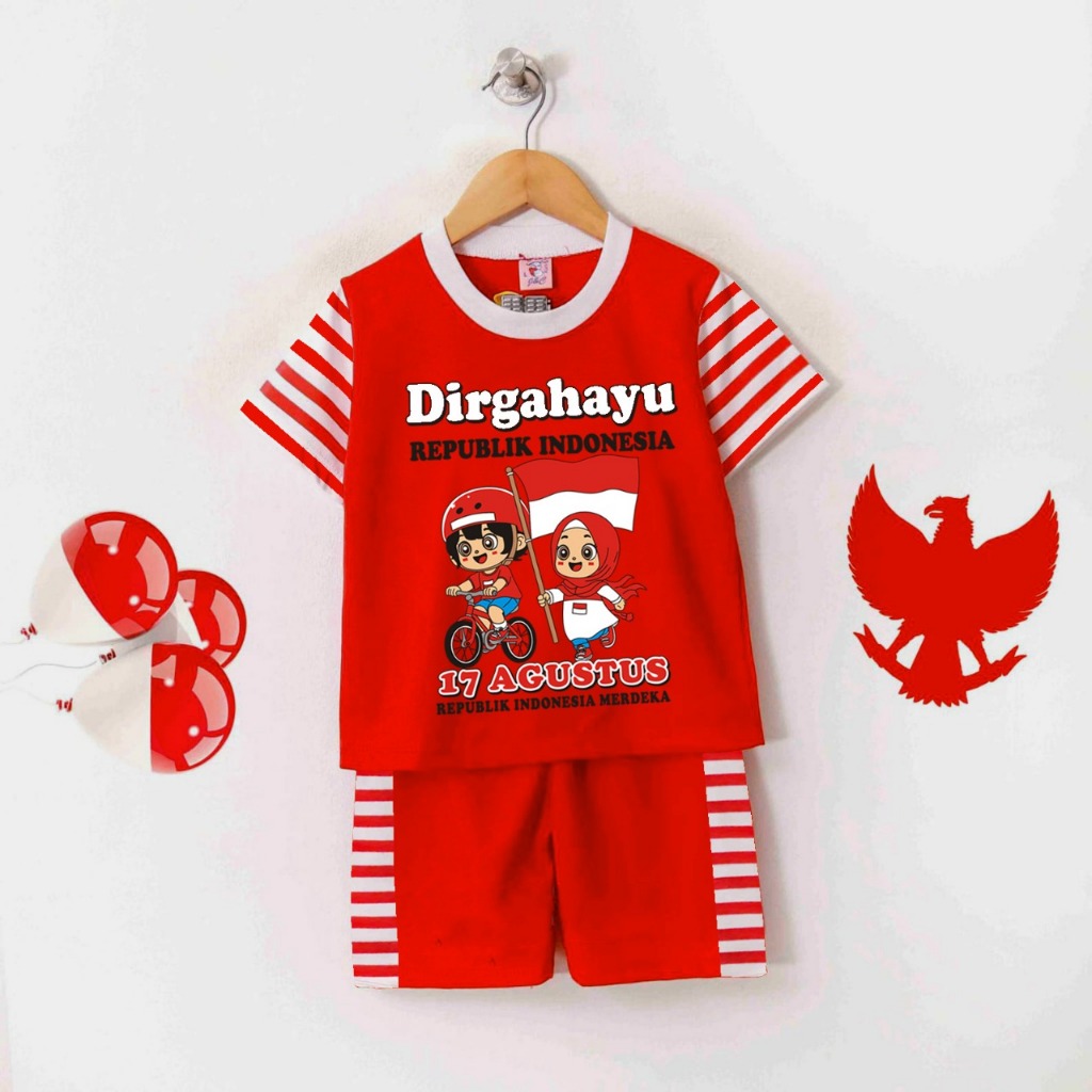 Setelan Distro Anak Unisex Kaos Kemerdekaan Indonesia 1-8 Tahun/Setelan Anak Hut Ri 17 Agustus