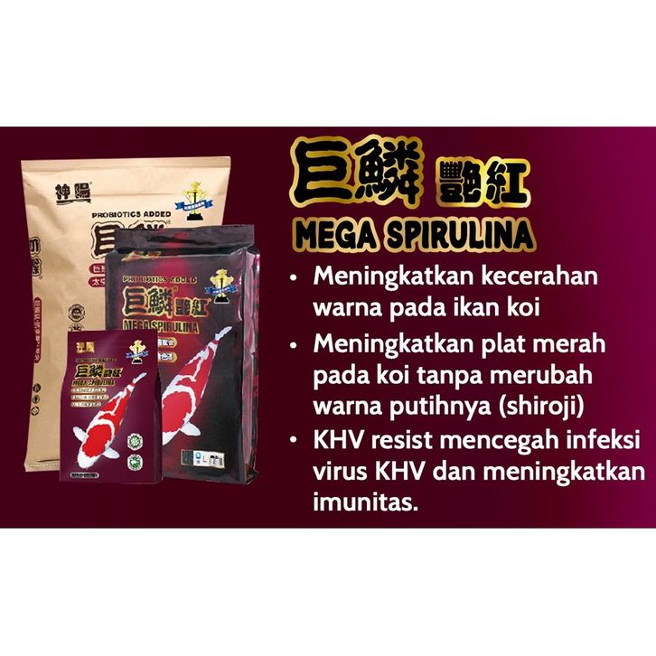Mega Spirulina Color Enhancer Pellet Koi Meningkatkan Warna 1Kg Size M/L