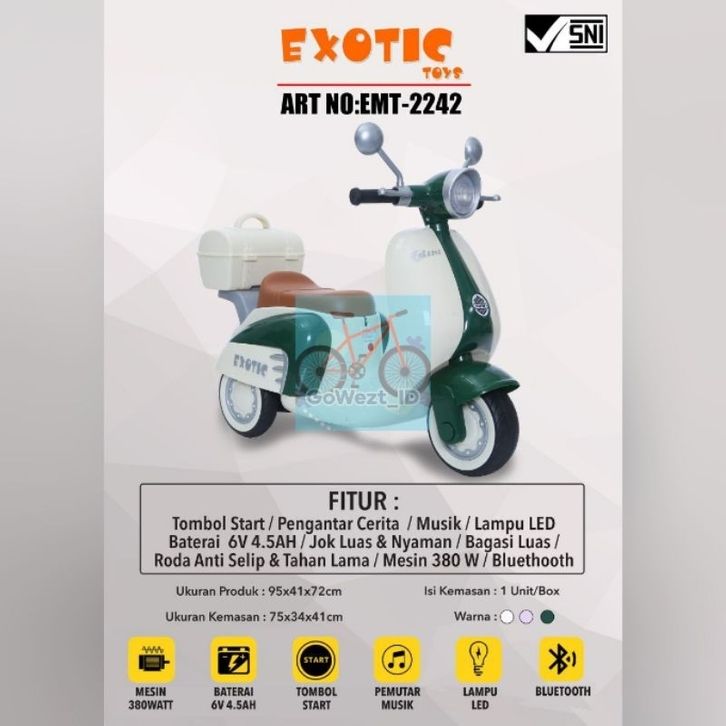 Mainan Motor Motoran Aki Anak Vespa EMT 2232 2242 Rechargeae Motorcycle Exotic Hh Quality