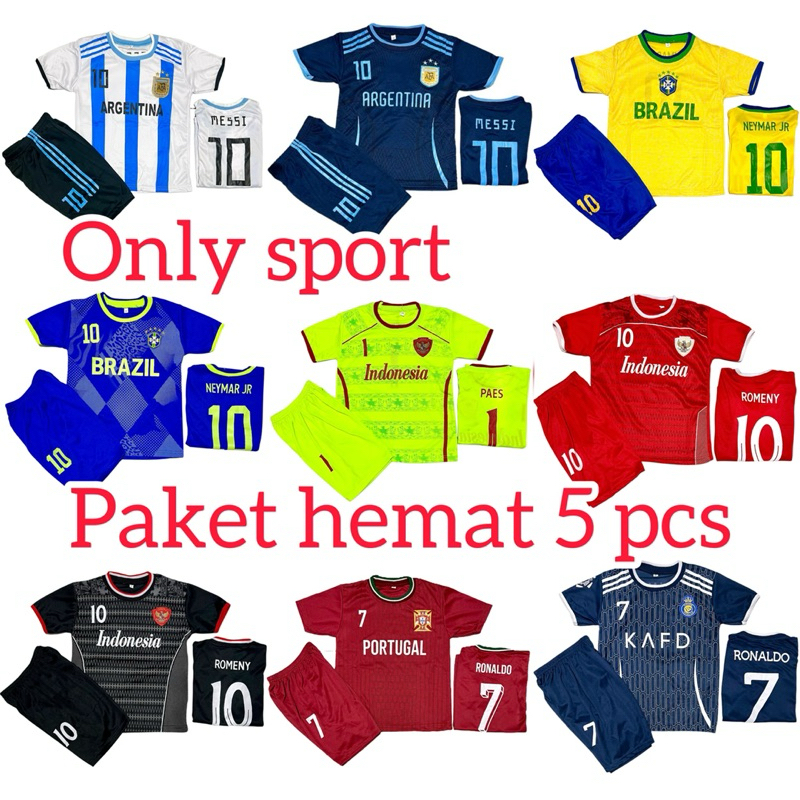 Paket Hemat 5 Pcs / Setelan Baju Bola Anak Terbaru/Kaos Alahraga Anak