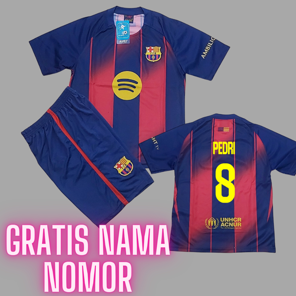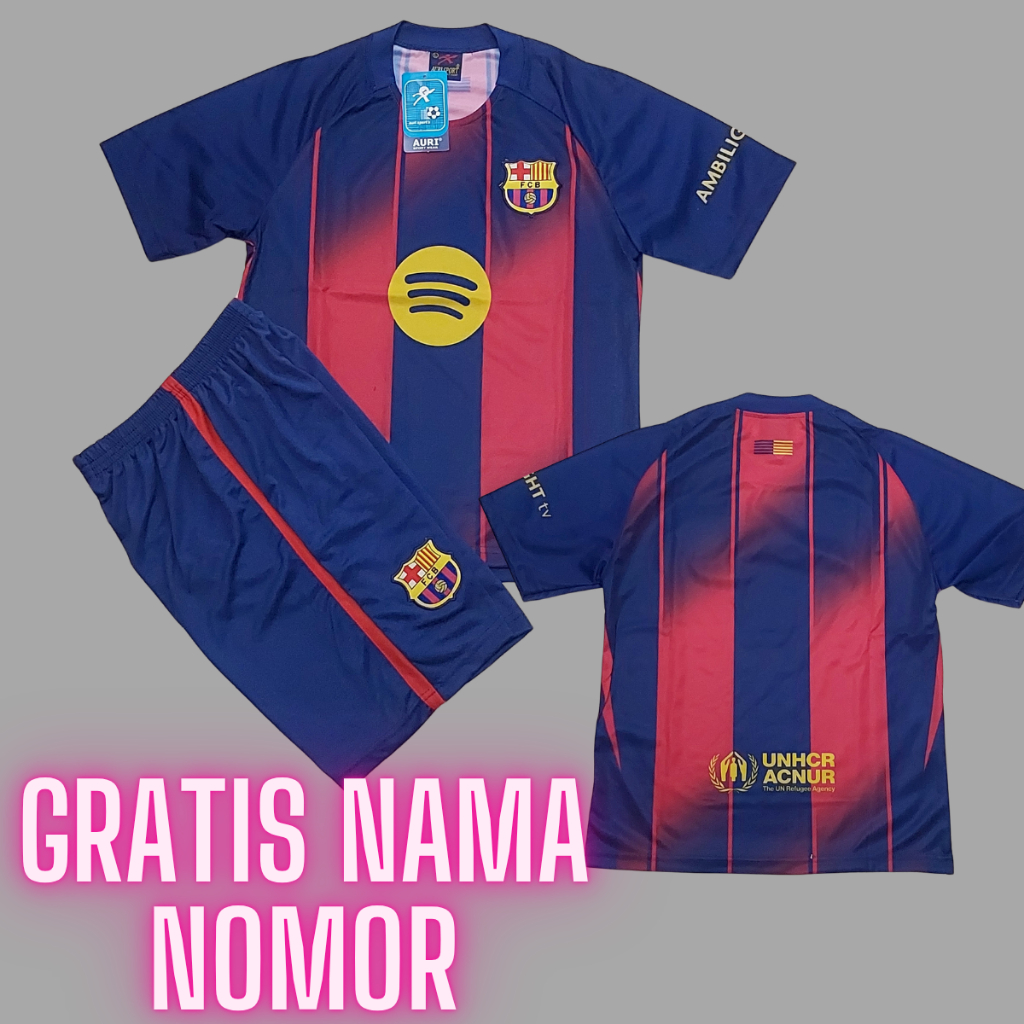 Gratis Nama Jersey Barcelona Home Kids Terbaru/Setelan Baju Bola Barcelona 23/24