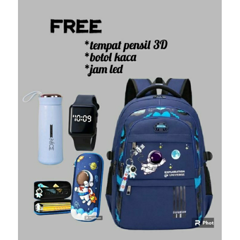 Tas Ransel Astronot Anak Sekolah Sd Smp Sma Free Tempat Pensil 3D Terbaru Murah Meriah
