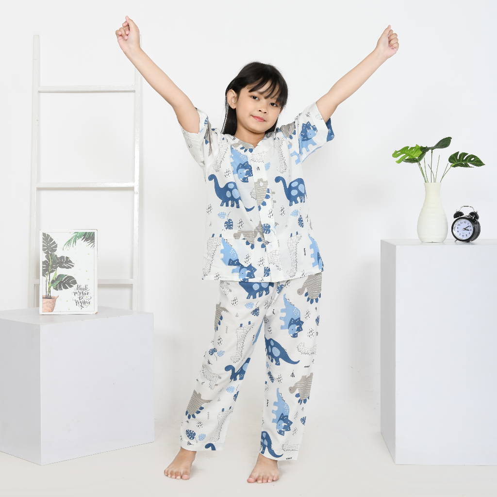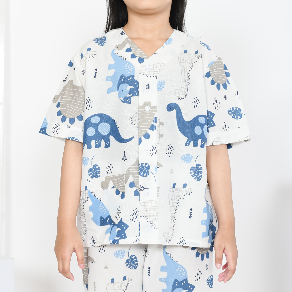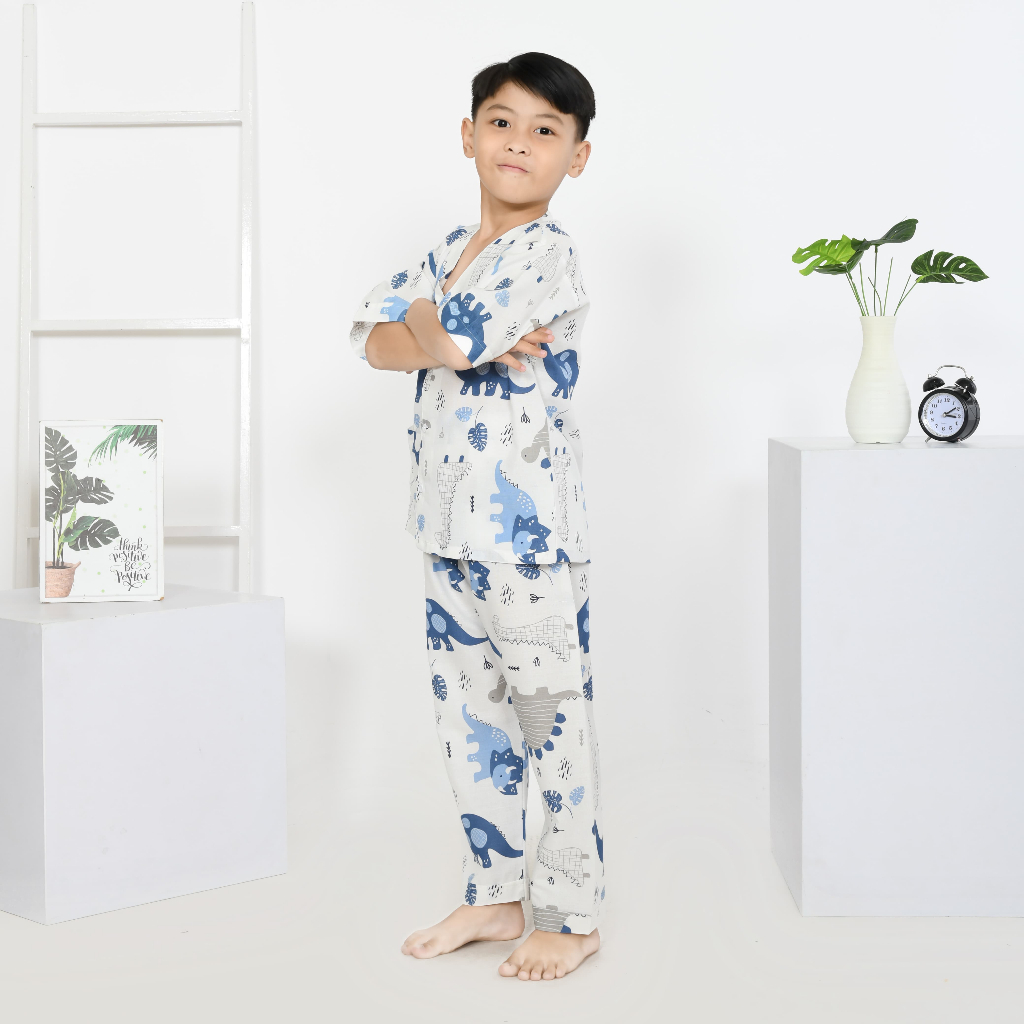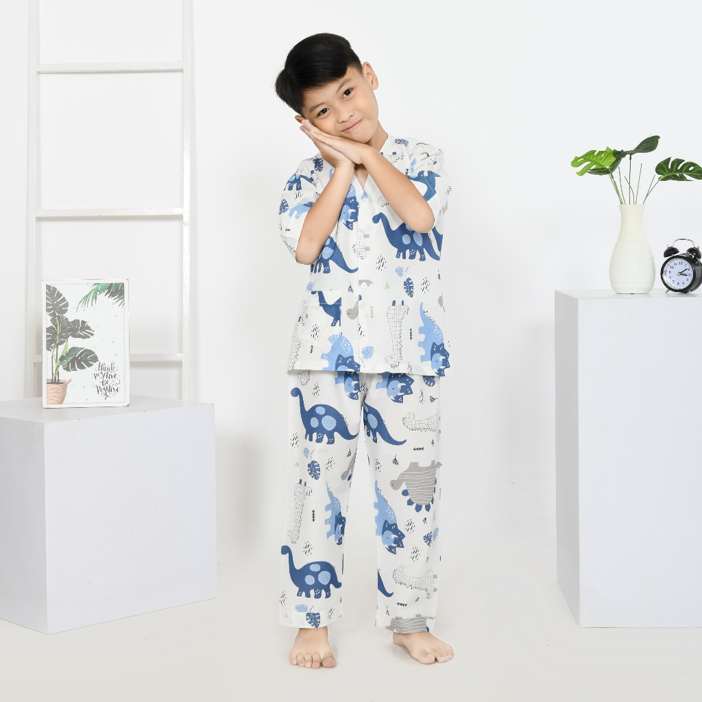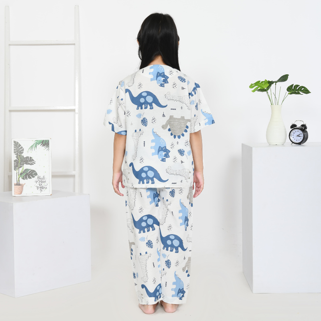 Piyama Anak Laki Laki Motif Baby Dino White Mat Katun