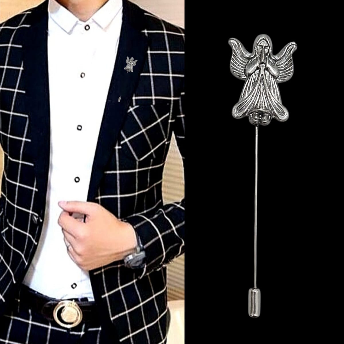 Metal Silver Pray Angel Lapel Pin Bros Jas Kameja Tuxedo Mens Pria Pin Jas