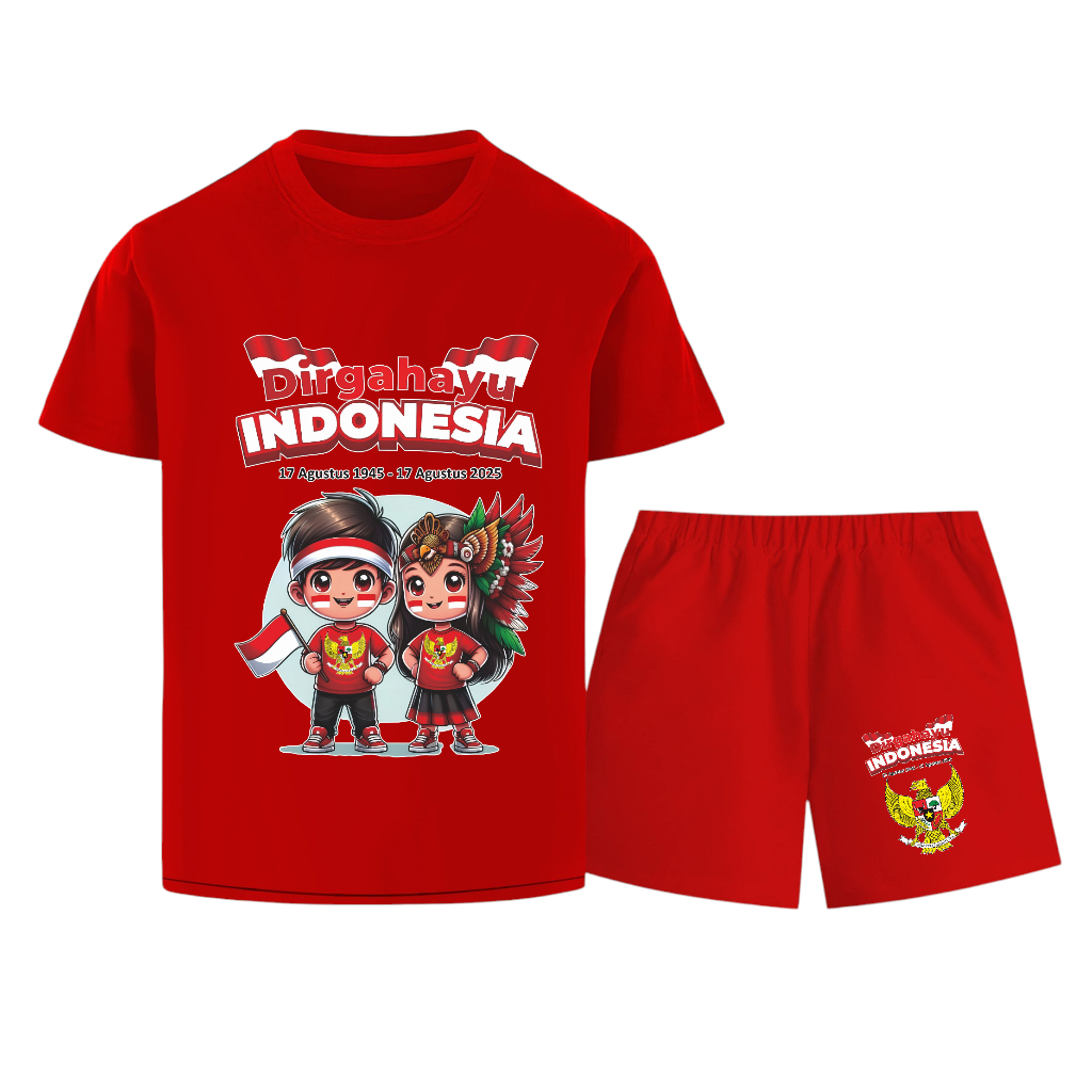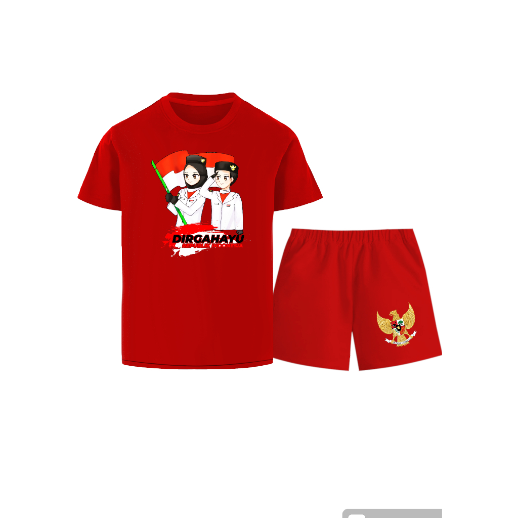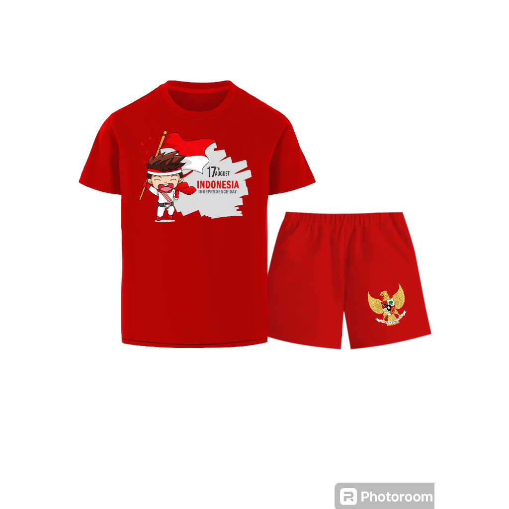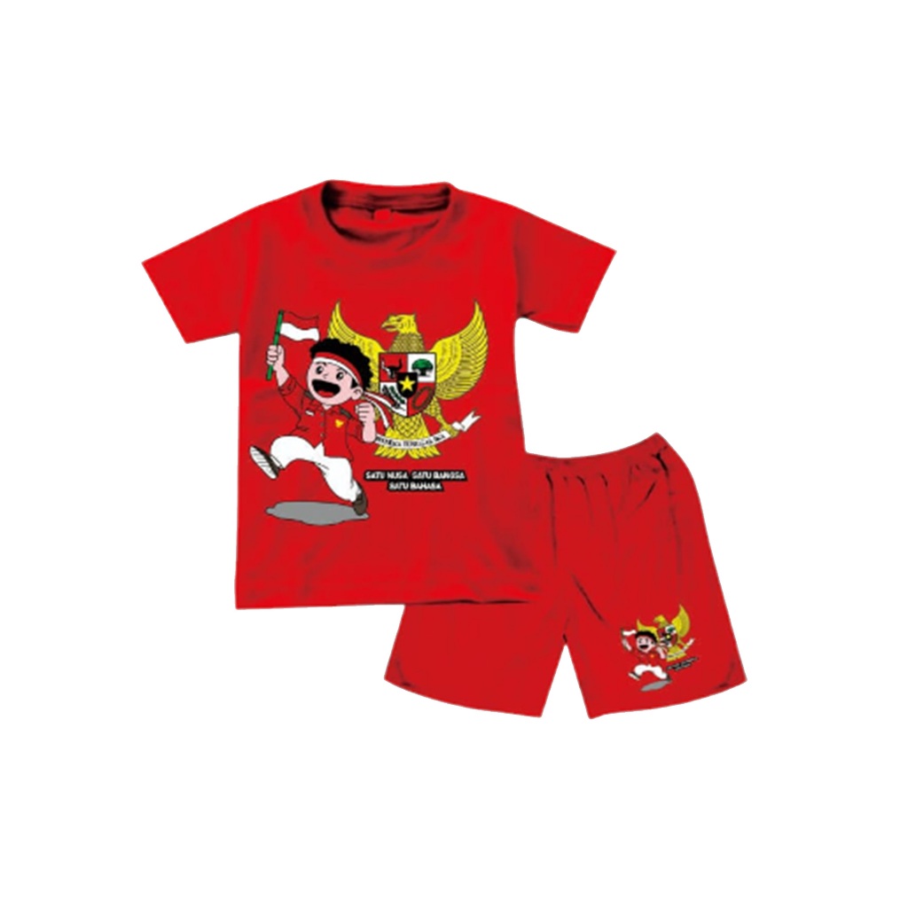 Setelan Lengan Pendek Anak Laki-Laki Dan Perempuan Motif 17 Agustusan Umur 1-10 Tahun