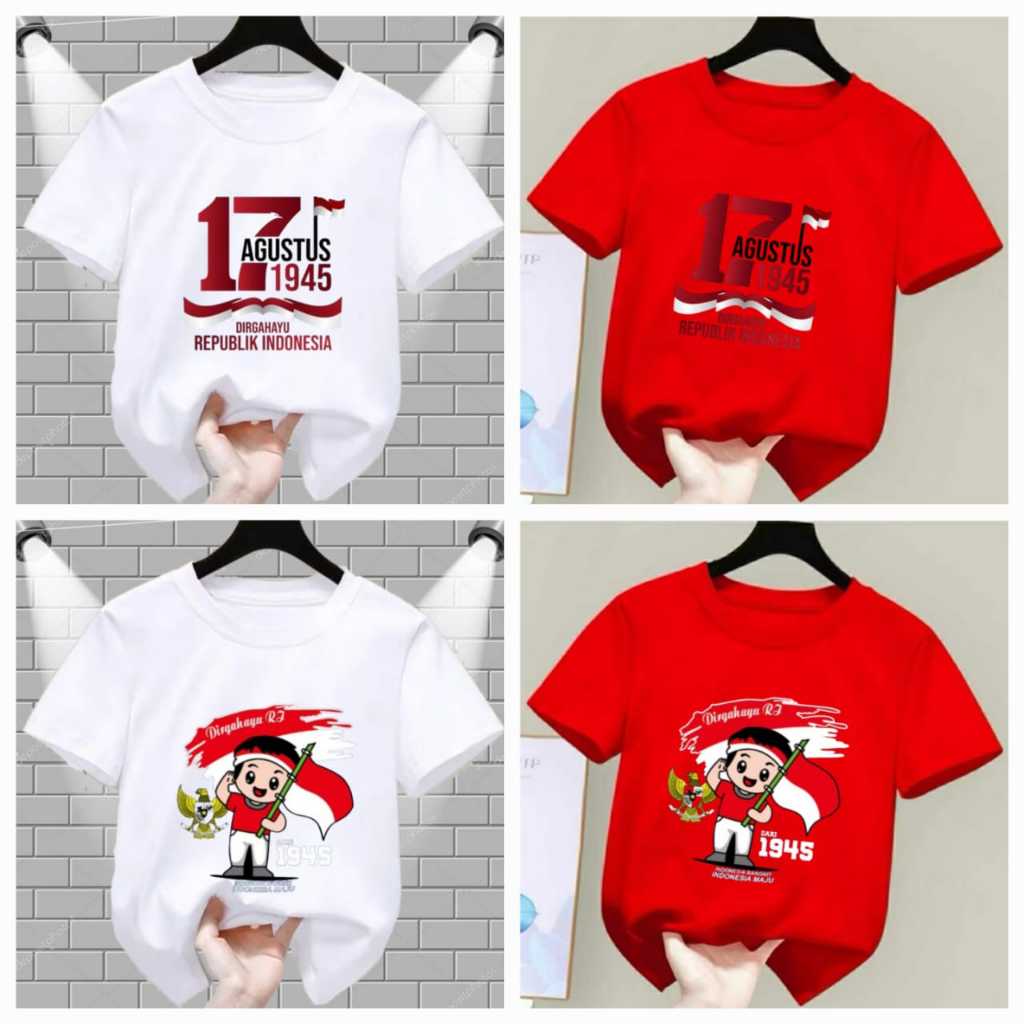Atasan Kaos Anak Laki Laki Perempuan 17 Agustus Ukuran S - Xxl Umur 1 - 15 Tahun