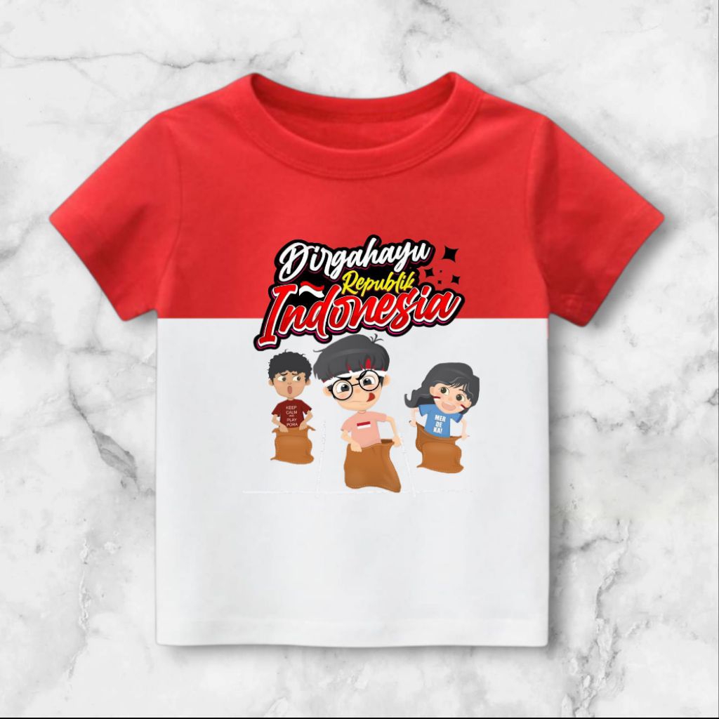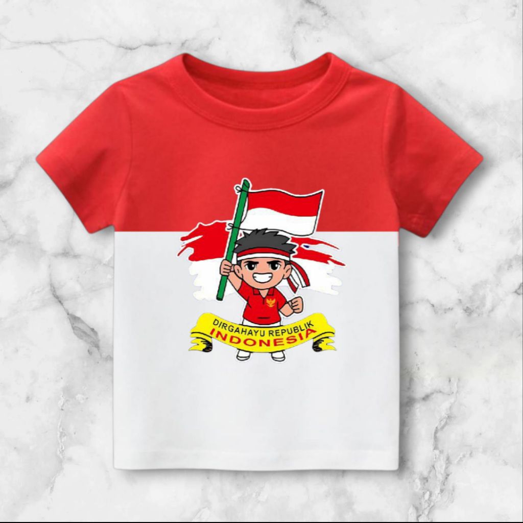 Kaos 17 Agustus Anak-Anak Unisex Umur 1-9 Tahun/Koas Kombinasi Merah Putih