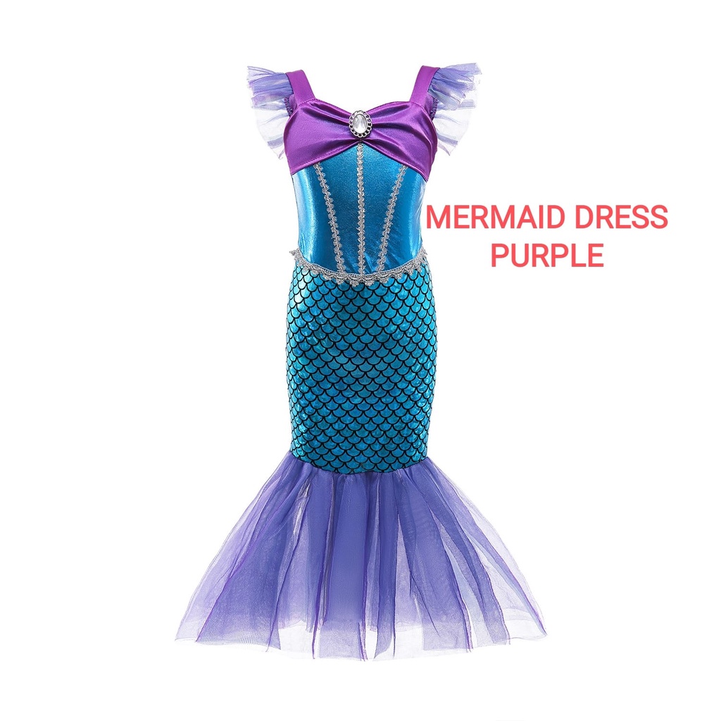 Mermaid Dress Purple Baju Dress Kostum Princess Ariel Duyung Import Dres Princes Anak
