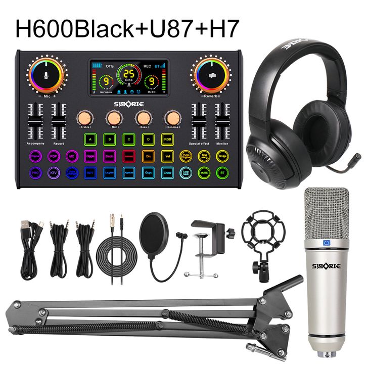 Siborie H600 soundcard Original U87 Mic H7 hedaphone Full Set for Live Streaming Langsung