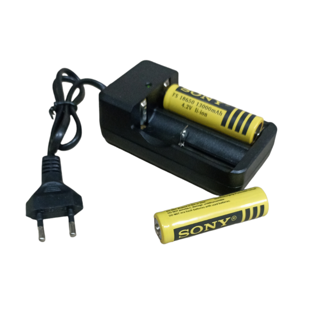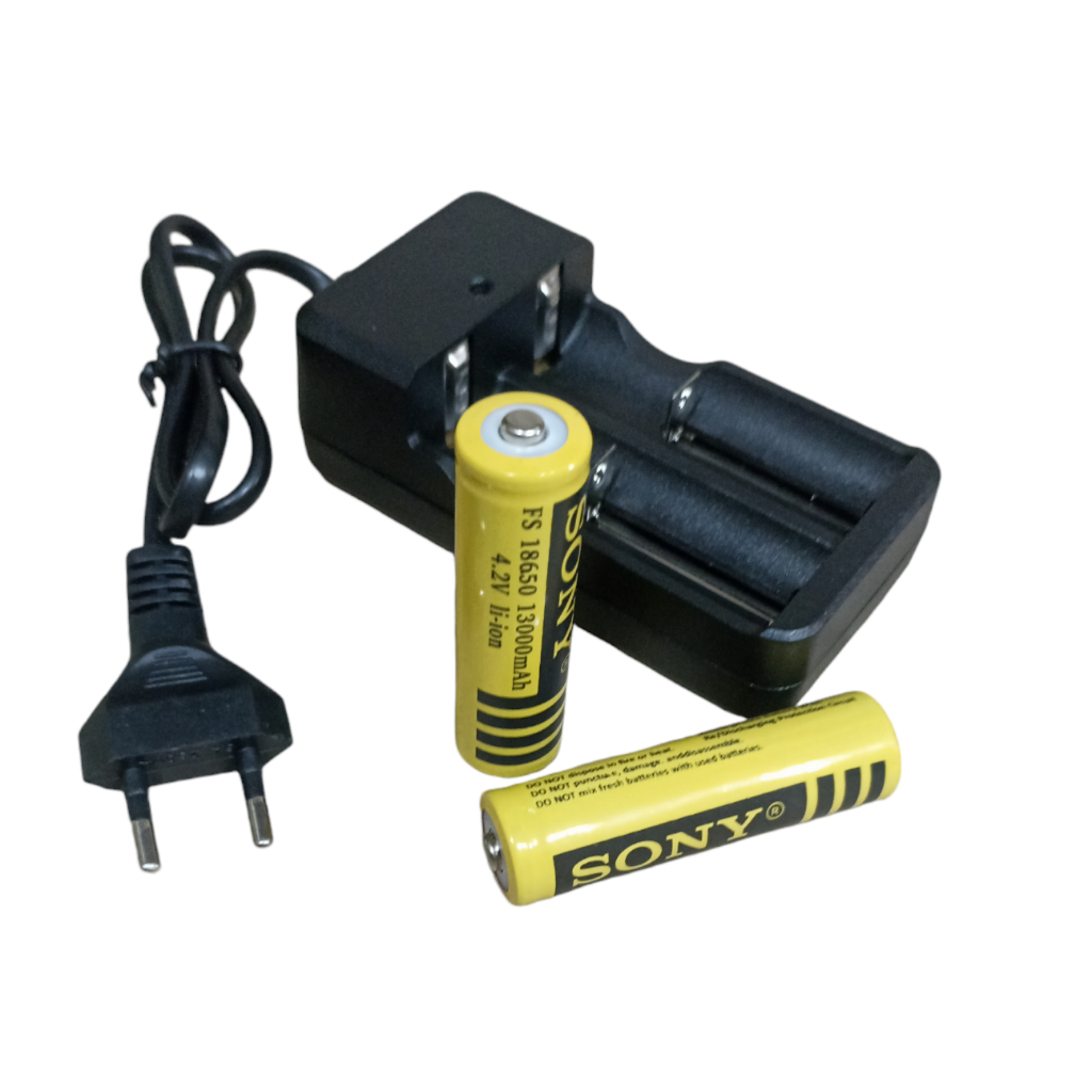 Charger + 2 Batterai 18650 Kuning Li-ion 4.2v - 13000mAh