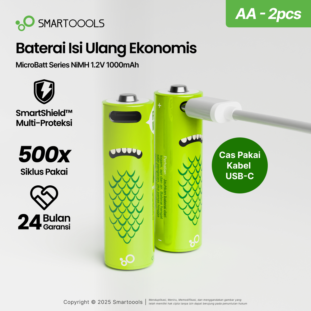 Baterai Cas Isi Ulang 2pcs Smartoools MicroBatt AA 1.2V Micro USB Rechargeable NiMH Battery Charge