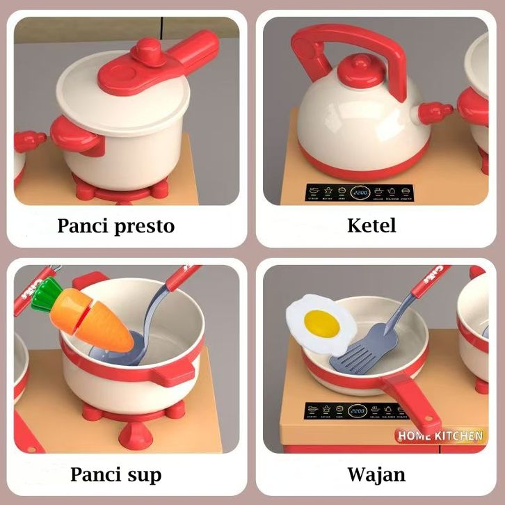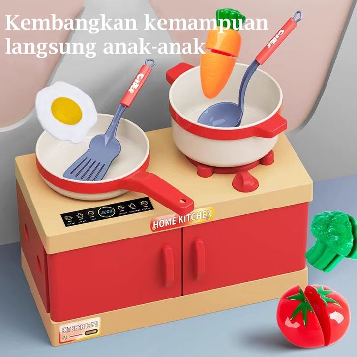 Mainan Masak Masakan Set Mainan Dapur Anak Bermain Rumah Mainan Cooking Set Kompor Menyala