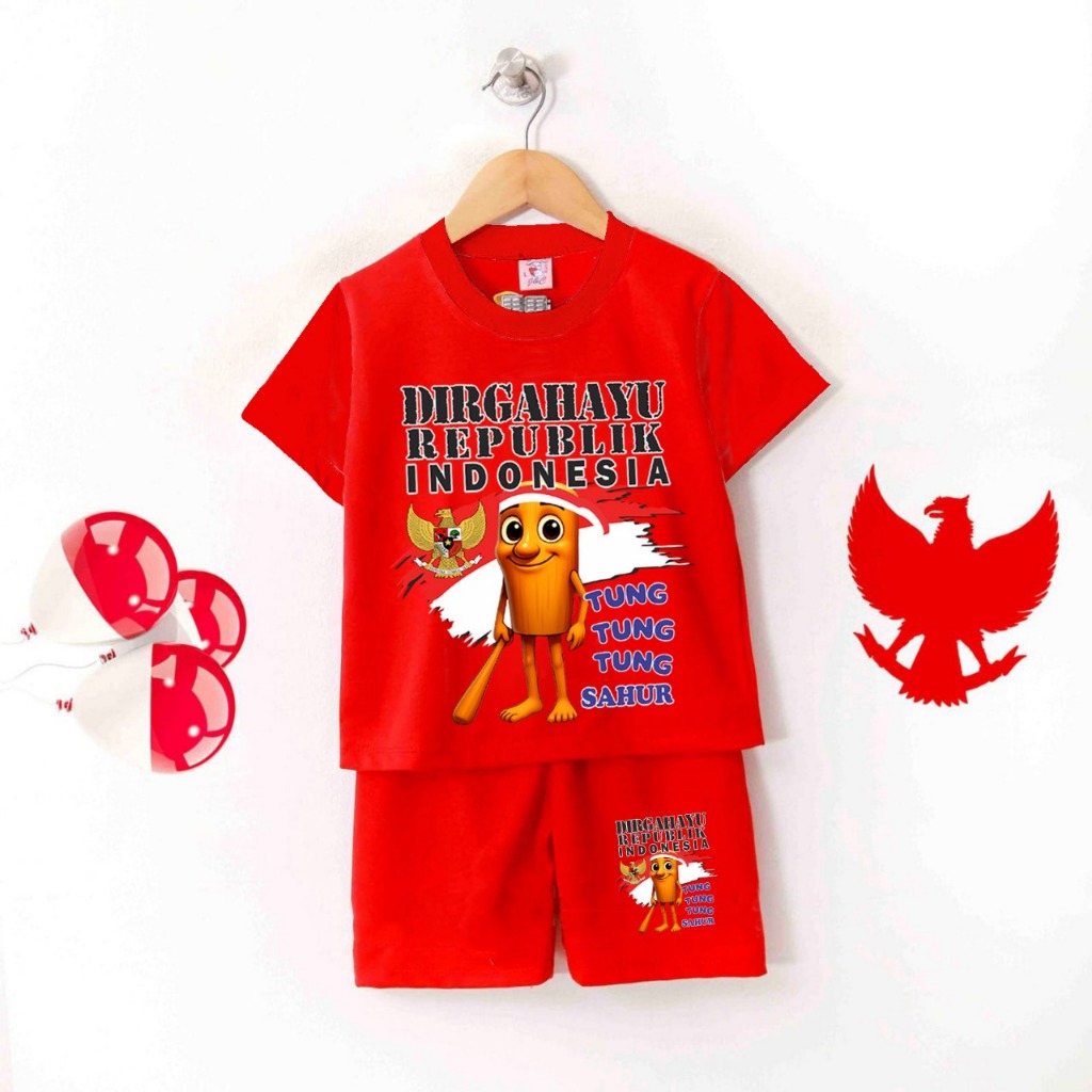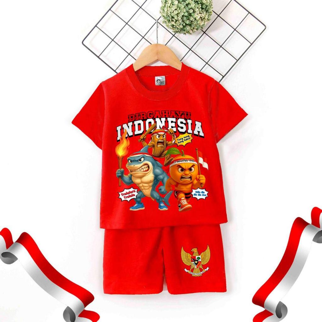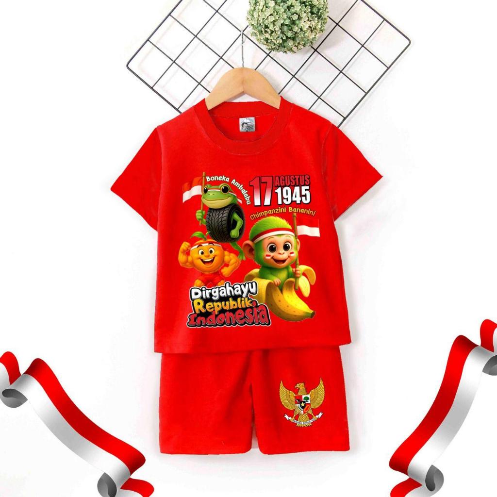Setelan Anak Unisex Kaos Kemerdekaan Indonesia 1-12 Tahun /Setelan Anak Hut Ri 17 Agustus/Merdeka/Setelan Kemerdekaan An