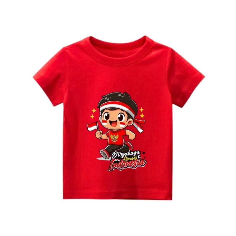 Kaos Anak Kemerdekaan 17 Agustus Laki Laki Perempuan 1-12 Tahun Merah Putih Free Sticker Pipi Ikat Kepala