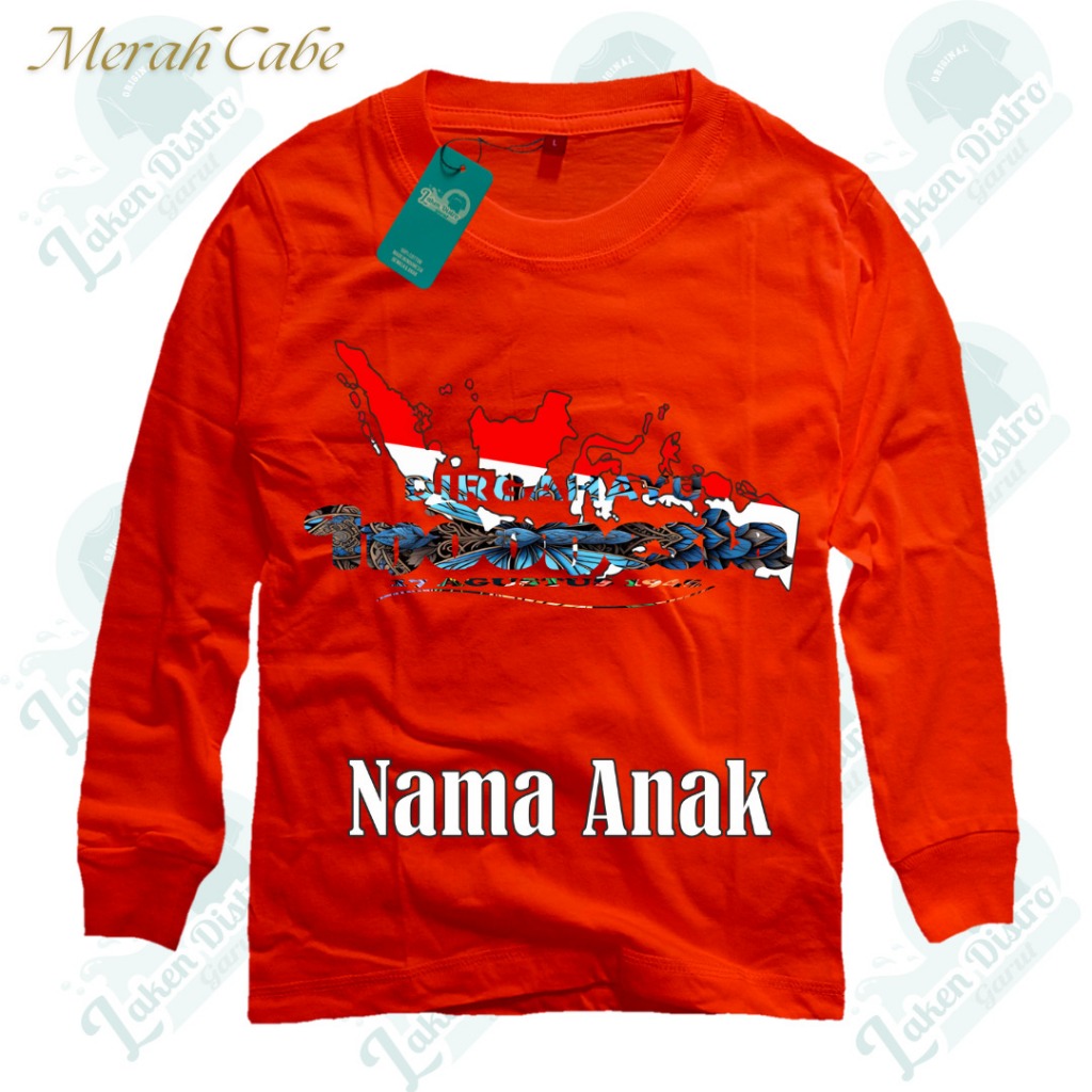 Kaos Anak Kemerdekaan 17 Agustus Lengan Panjang Free Custom Nama Umur 1 - 13 Th