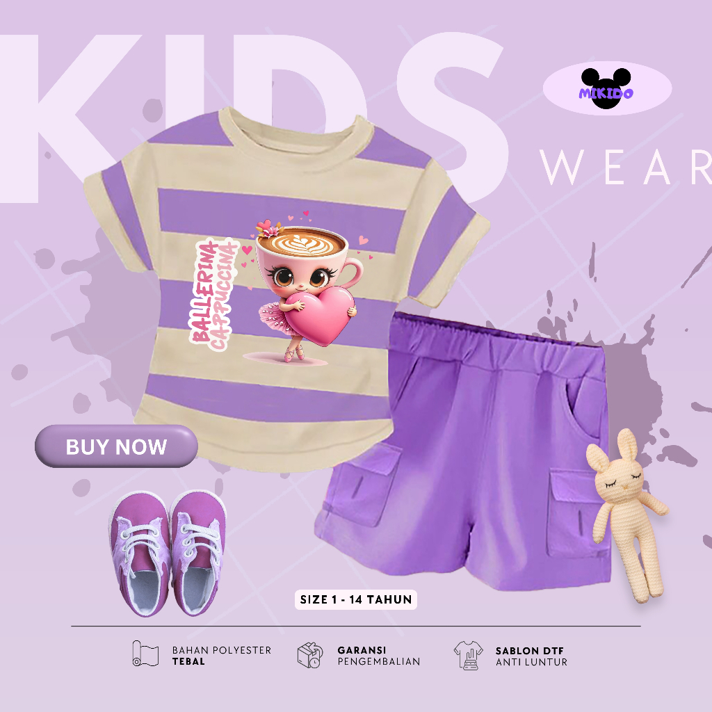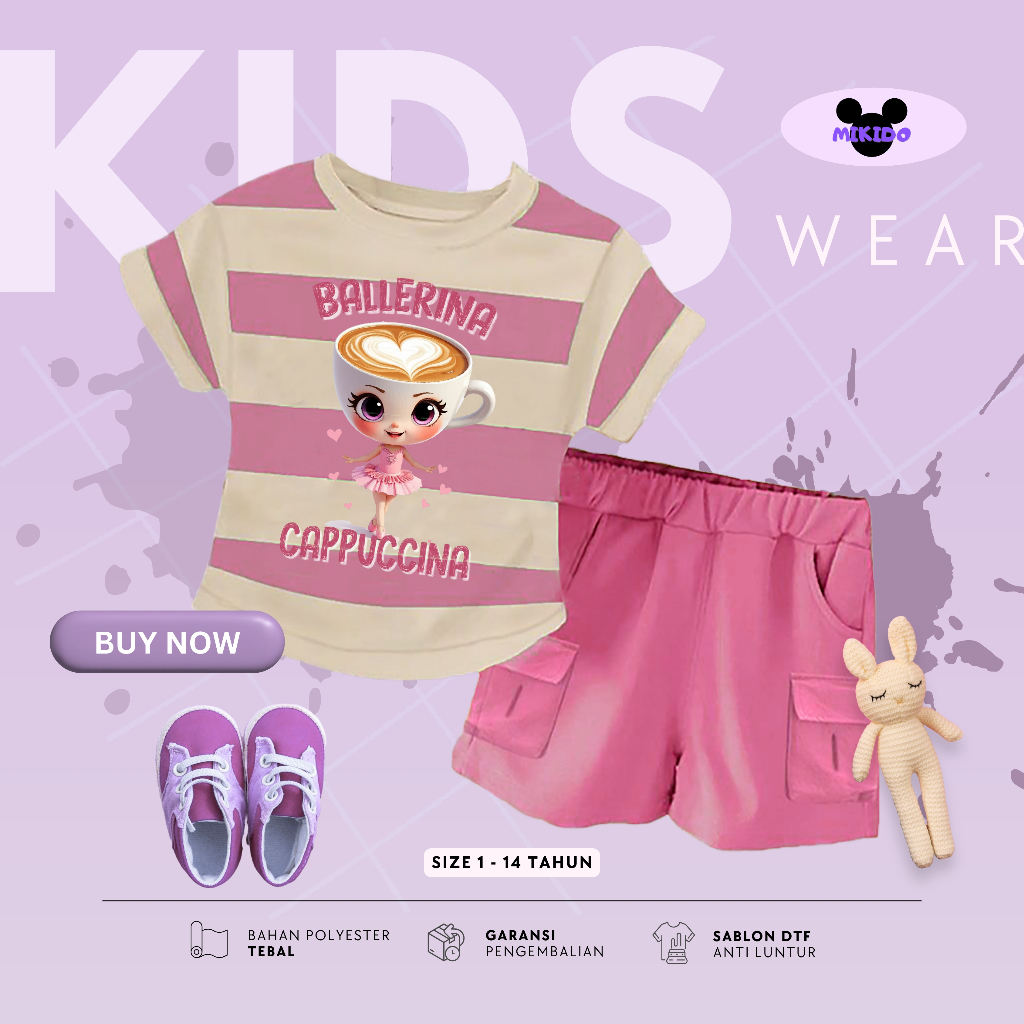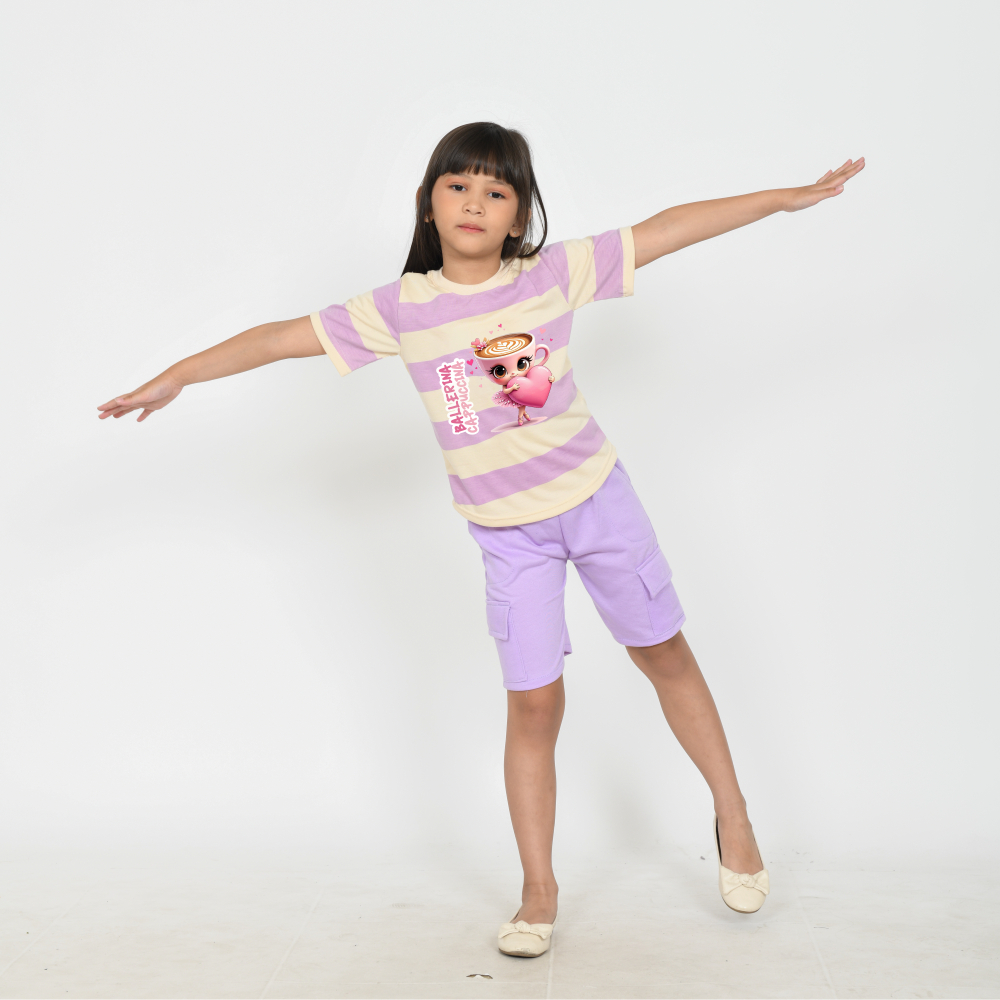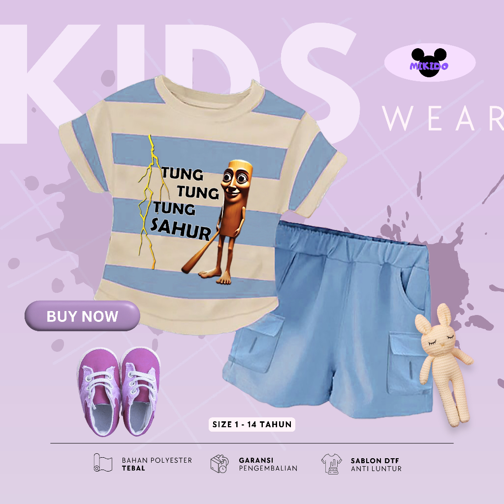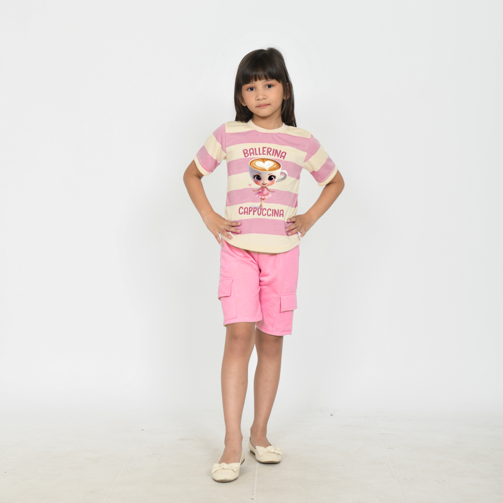 Set Kaos Salur Dan Celana Pendek Kargo Anak Perempuan Karakter Anomali Ukuran 1-12 Tahun