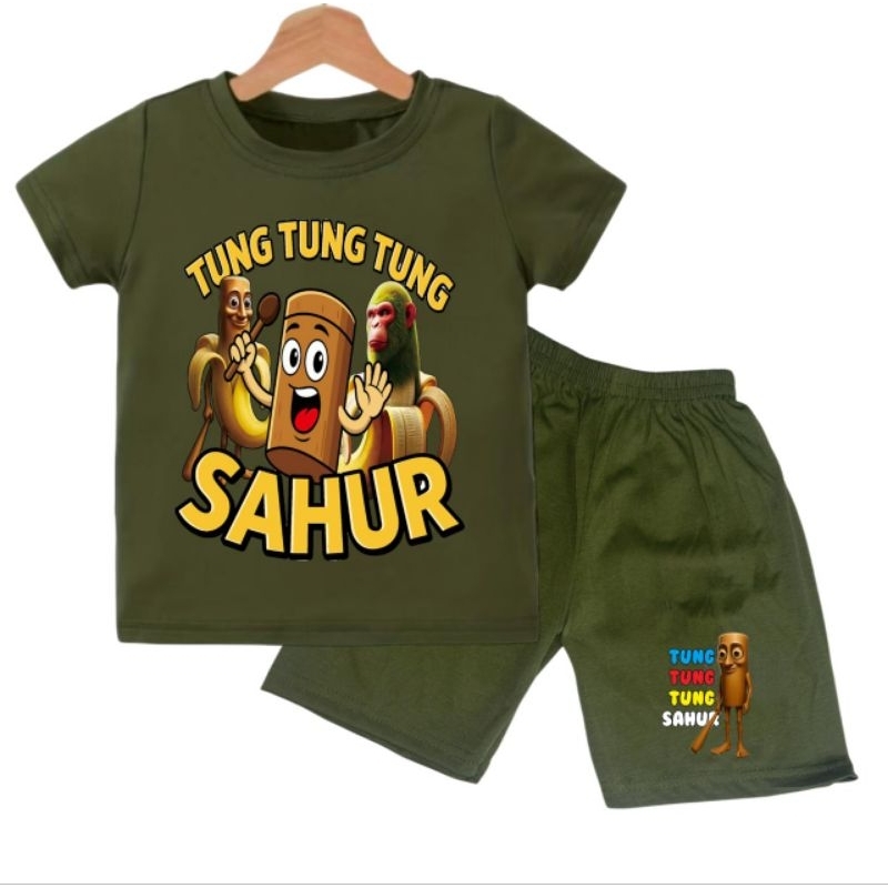 Setelan Kaos Distro Tung Tung Sahur Setelan Harian Anak Usia 2-10