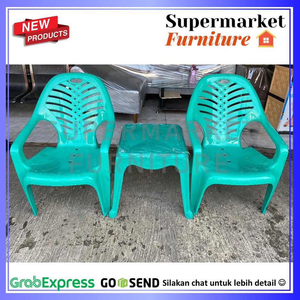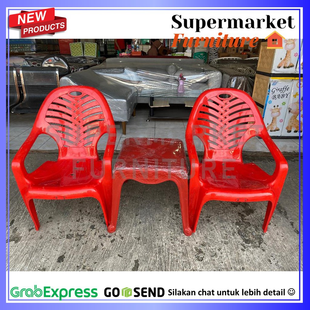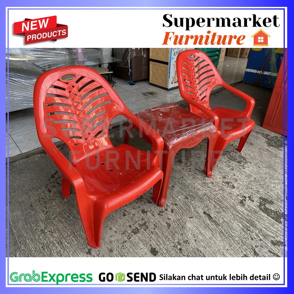Kursi Teras Set Plastik Kursi Tamu Set 2 Kursi Teras Plastik 909 dan 1 Meja 4343 Napolly Merah Hijau Kursi Santai