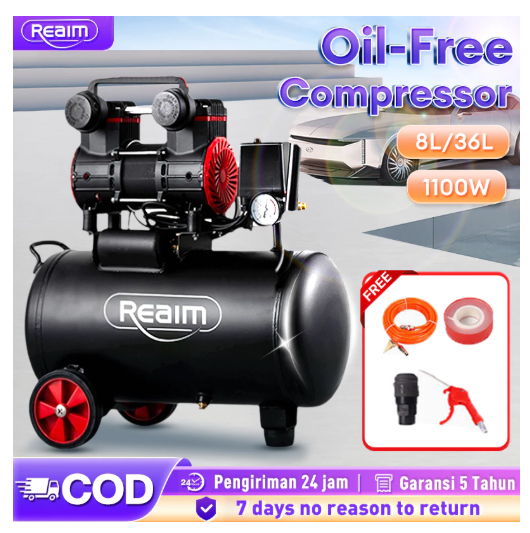 REAIM Air Compressor 12/36L Kompresor Angin Oiless Listrik 1100W Portable Alat Tekanan Udara