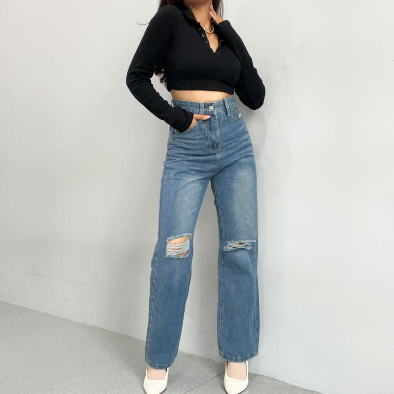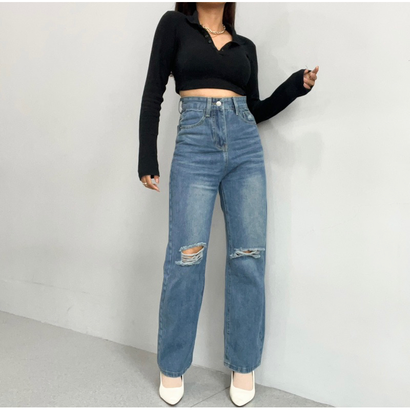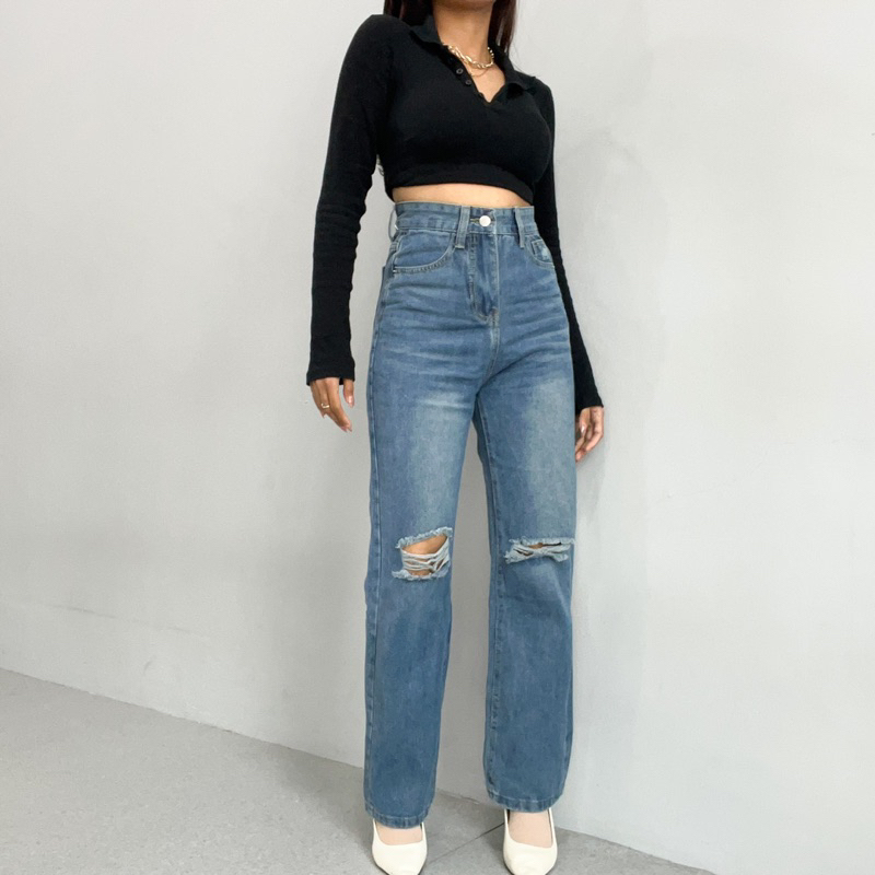[LUXE.DLABEL] - Jeans 156 | Celana Panjang Highwaist Wanita Jeans Premium Quality Jeans Wanita Polos Ripped Jeans Highwa