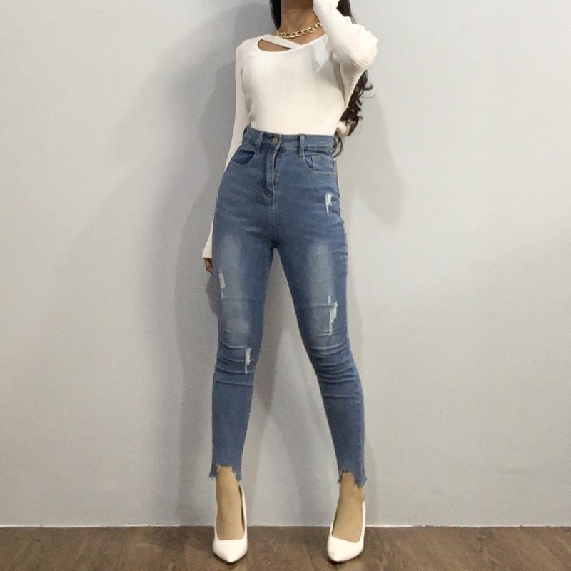 [LUXE.DLABEL] - E43 Jeans | Celana panjang Highwaist wanita Jeans premium Jeans wanita polos ripped jeans High waist jea