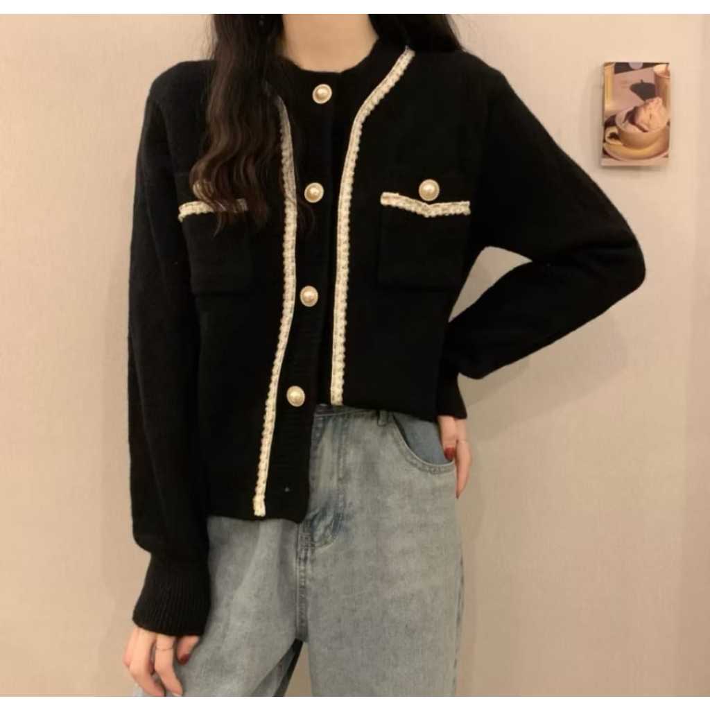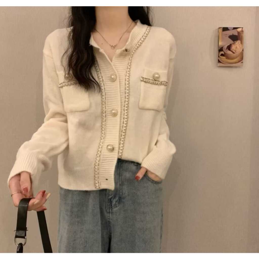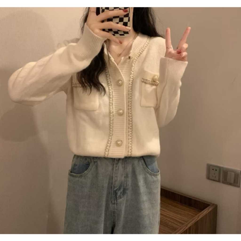 Cardigan Rajut Wanita Knitwear List Full Mutiara Terbaru