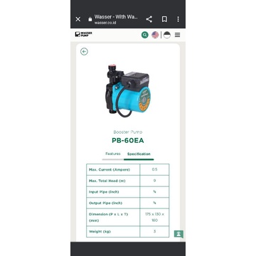 POMPA BOOSTER MESIN PENDORONG WASSER PB218EA PB-60EA PB60EA