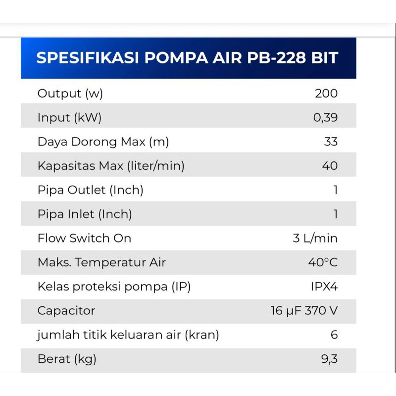 SHIMIZU PB 228 BIT POMPA BOOSTER OTOMATIS / POMPA PENDORONG 1 RUMAH PB228BIT
