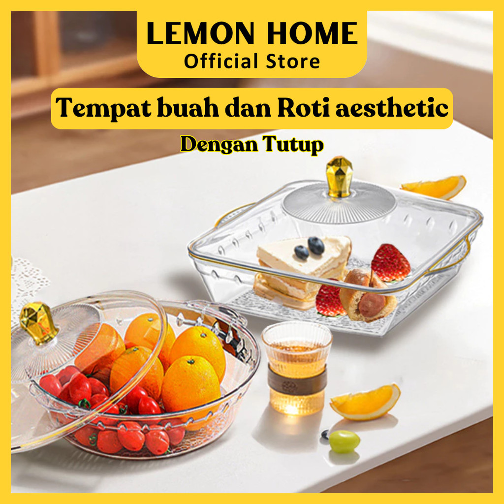 Lemon Home [Garansi 1 Tahun] Tempat Buah Tempat Roti Nampan Dengan Tutup Aesthetic Mewah LH