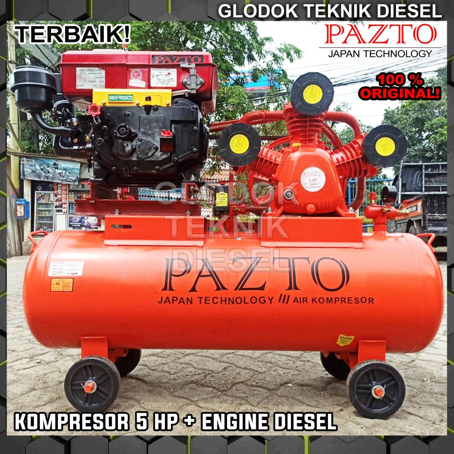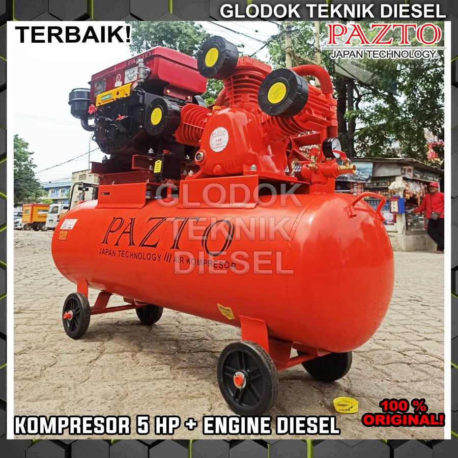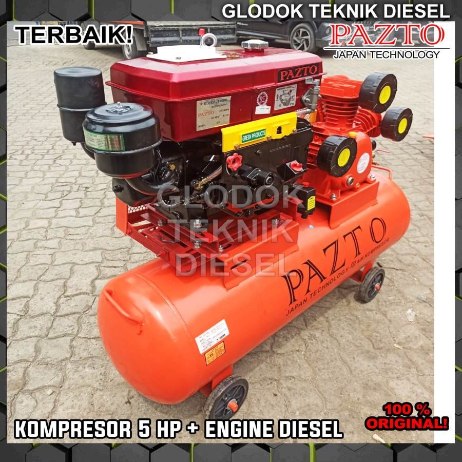PAZTO Kompresor Angin 5 HP + Engine Diesel Solar 8 HP PK Compressor