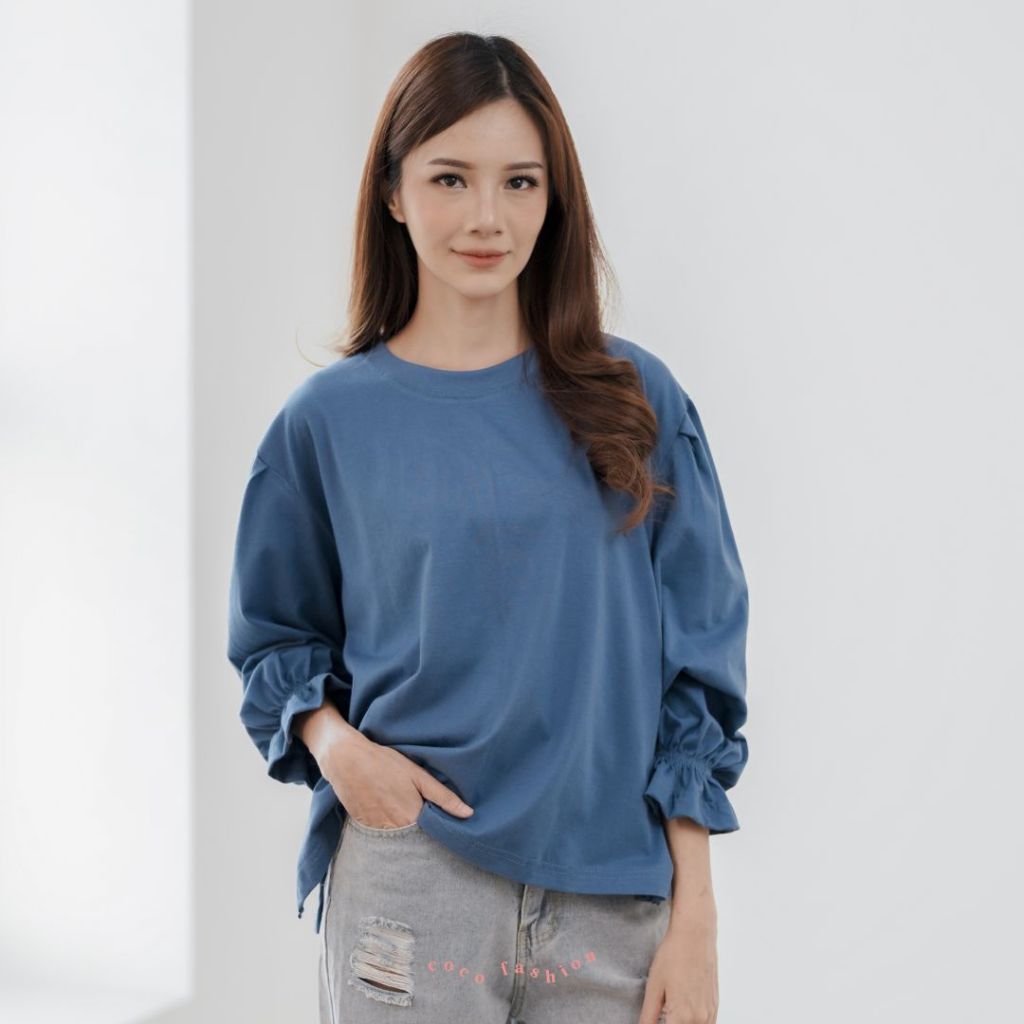 Atasan Wanita Kaos Lengan Panjang Anya Top Hijab Baju Katun Combed Oversize Premium Basic Polos