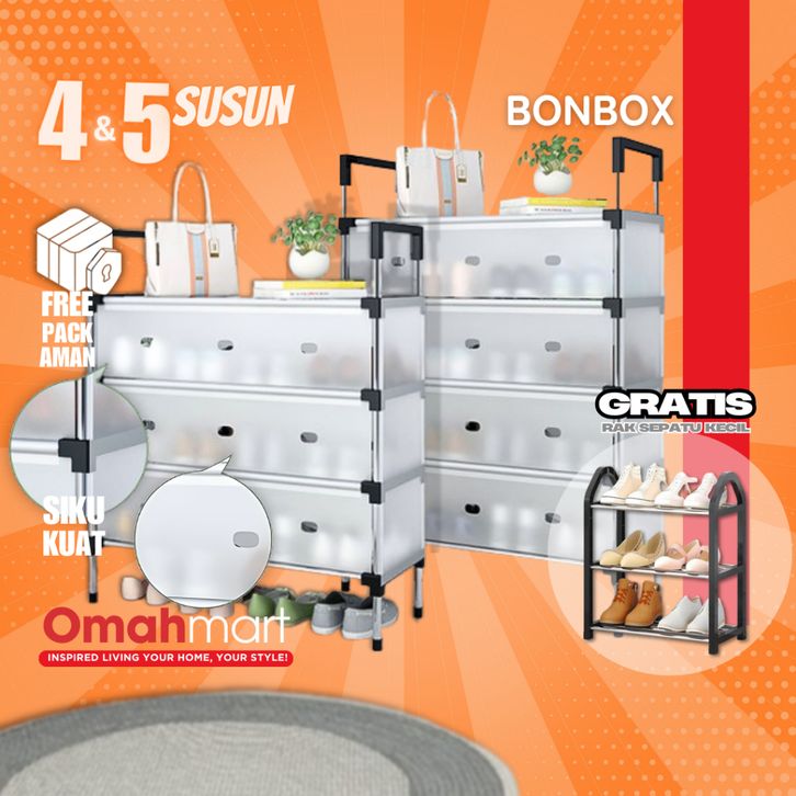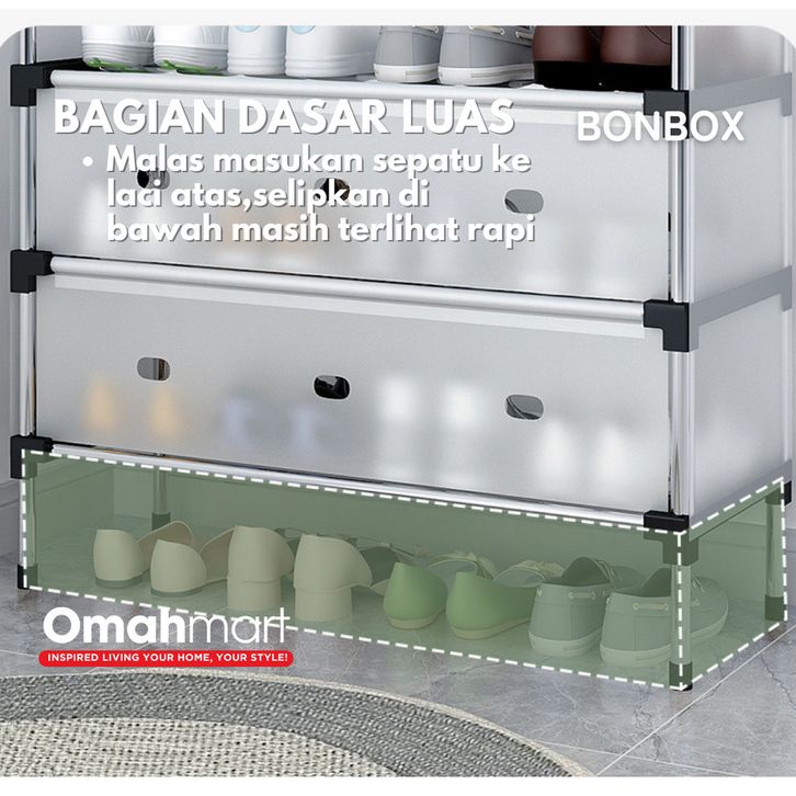 Rak Sepatu BONBOX Rak Sepatu Susun Tertutup Besi Aesthetic 4 dan 5 Susun Kokoh Kuat Tahan Lama