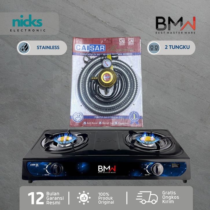 kompor gas rinnai tanam 2 1 tungku CO-D BMW Kompor Gas 2 Tungku Stainless Teflon SNI KG-882T