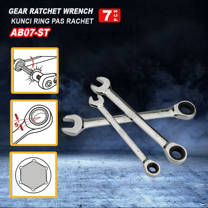 Kunci Set KUNCI PAS RING RACHET SET 7PCS 8MM 10 MM 12MM 13MM 14MM 17MM 19MM / KUNCI RING PAS SET 7 PCS