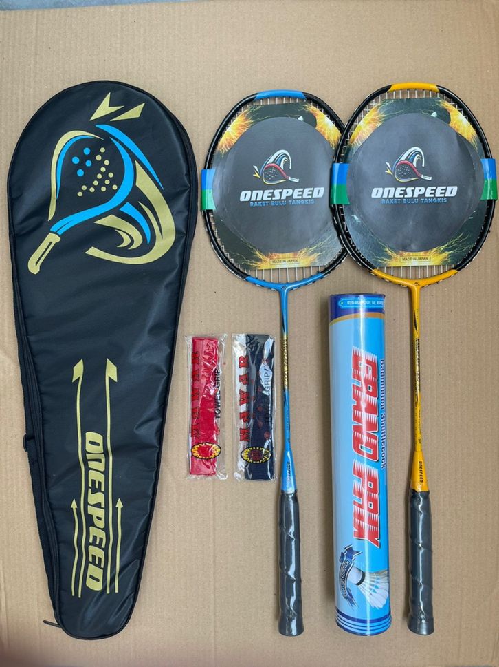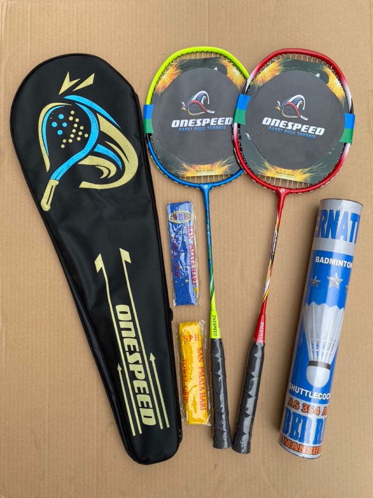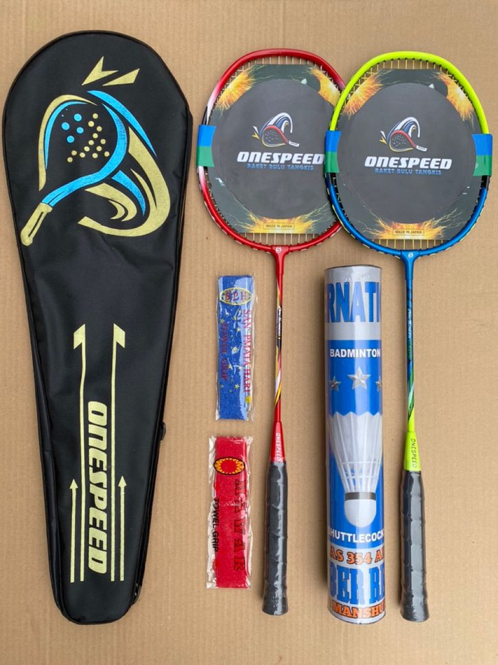 Raket Badminton Paket Lengkap Dapat 2 Raket + 2 Grip + 1 Tas + 1 Slop Kock