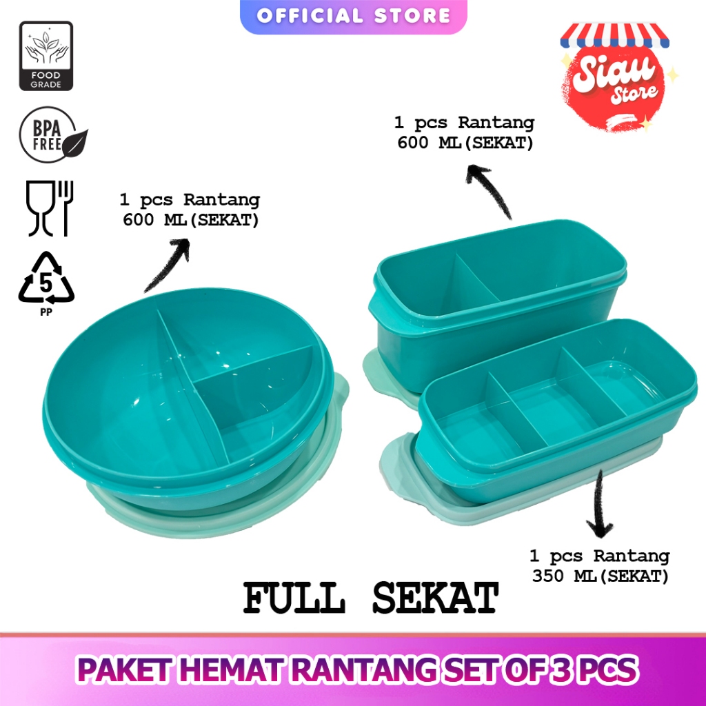 SIAU STORE KOTAK MAKAN PAKET HEMAT 3 PCS ( 1 PAKET ISI 3 ) BPA FREE