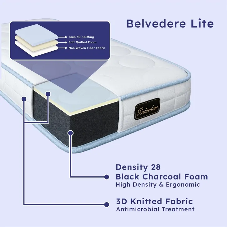 Belvedere Matras Lite - Free Bantal / High Density 28 Black Charcoal Foam/ Kasur Busa Box 10cm, 14cm