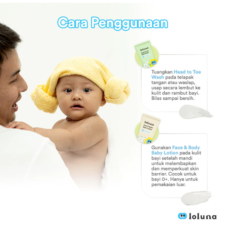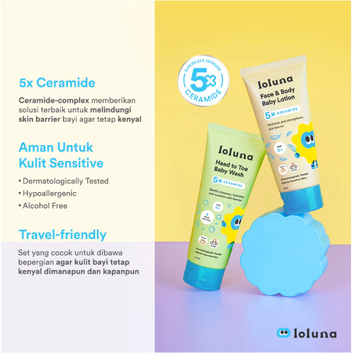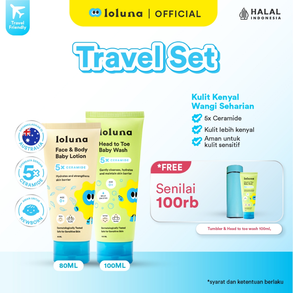 LOLUNA Travel Set | 2 in 1 Sabun dan Sampo 100ml + Losion Wajah dan Tubuh Bayi Baru Lahir 80ml.