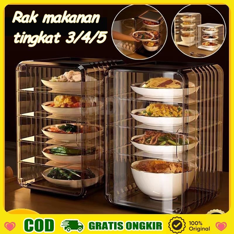 3/4/5 SUSUN Tudung Saji Rak Makan Bertingkat Serbaguna Multifungsi Bahan Acrylic Food Organizer