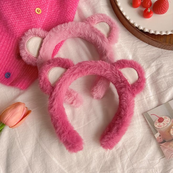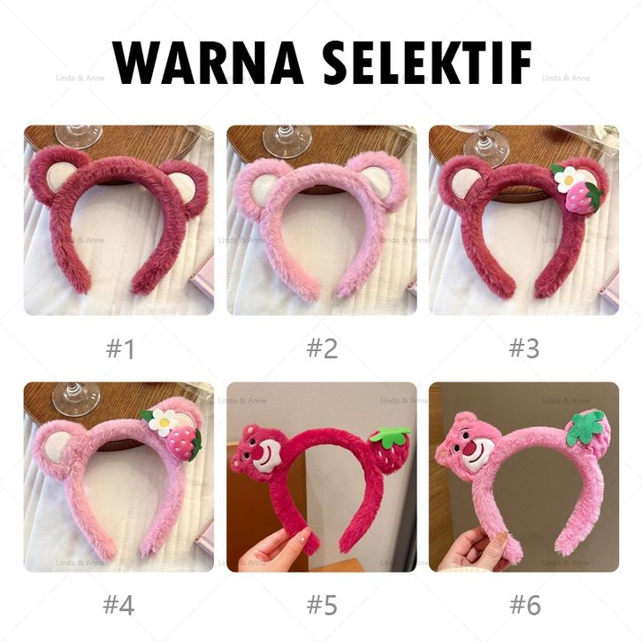 L&A - Bando Wanita Karakter Kuping Bear Lotso Bandana Anak Dan Dewasa Motif Strawberry Lucu Aksesoris Rambut
