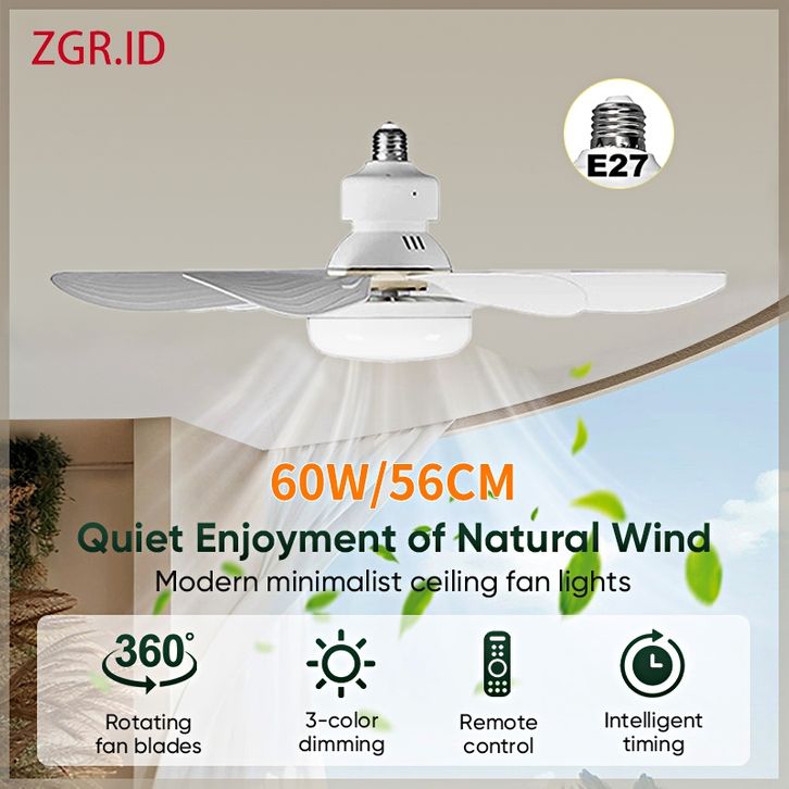 Lampu Kipas Angin Remote 22 Inci Dimmable 2 In 1 Kipas Angin Dan Lampu Plafon Multifungsi Dengan Remote Control Led
