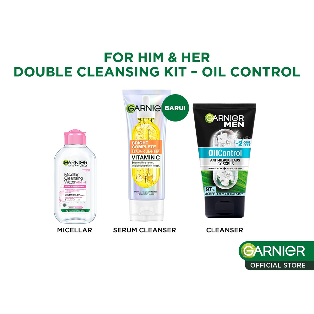 GARNIER MEN Paket Face Care Isi 2pcs 3pcs - Micellar Water Face Wash Serum Cleanser Moisturizer Gel Sunscreen