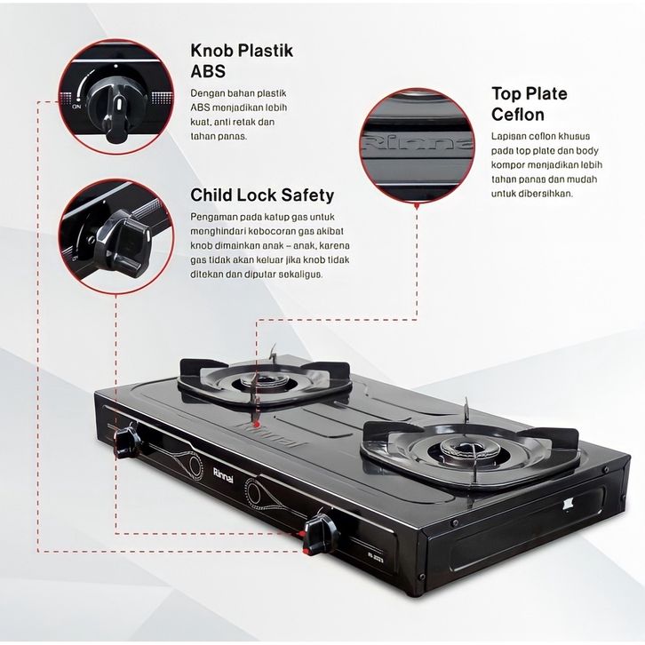 kompor gas rinnai tanam 2 1 tungku Rinnai RI-202S Kompor Gas 2 Tungku Rinnai RI 202 S - Kompor Gas 1 Tungku Rinnai RI 2