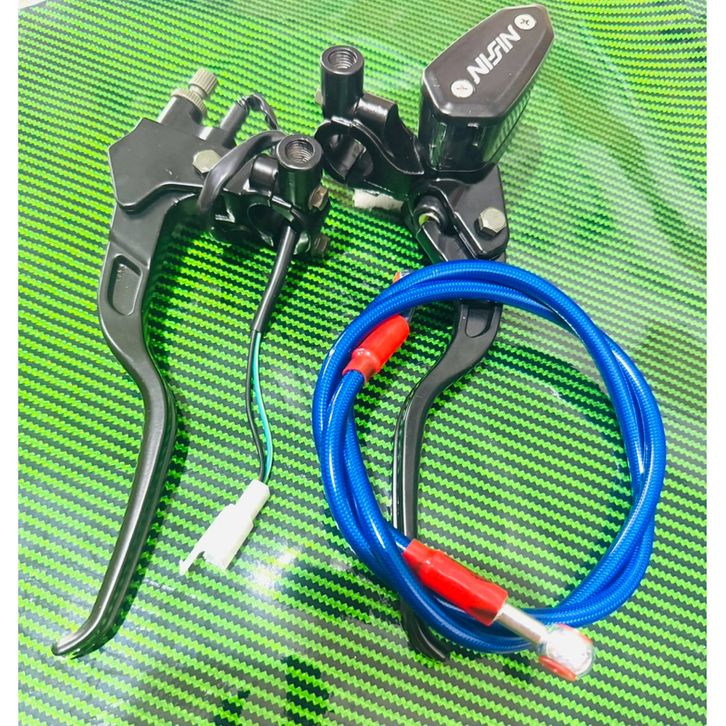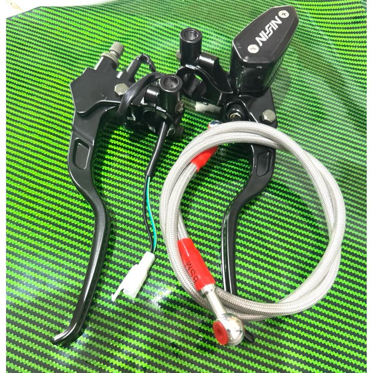 HANDLE KIRI KANAN REM MASTER NIZZIN OVAL+ SELANG REM HITAM SERAT 95CM UNIVERSAL