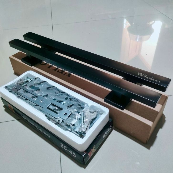 Gagang Pintu handle pintu black series 33cm 45cm || handle pintu set kunci