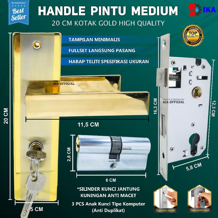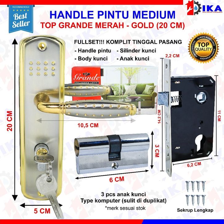 Gagang Pintu Kunci Pintu Set Komplit Silver | 20CM | Gagang Kotak / Kunci pintu top9rande silinder handle pintu kompli