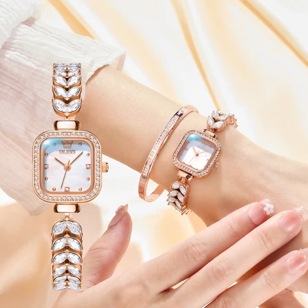 OLEVS Jam Tangan Wanita Anti Air Tahan Original Analog Terbaru 2025 Fashion Kecil Set Watch Women